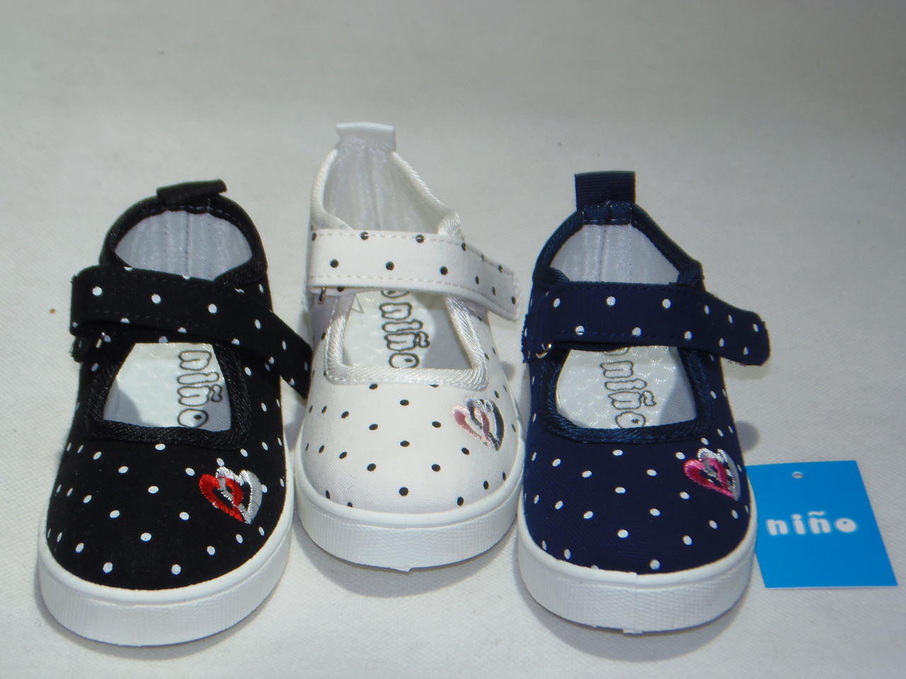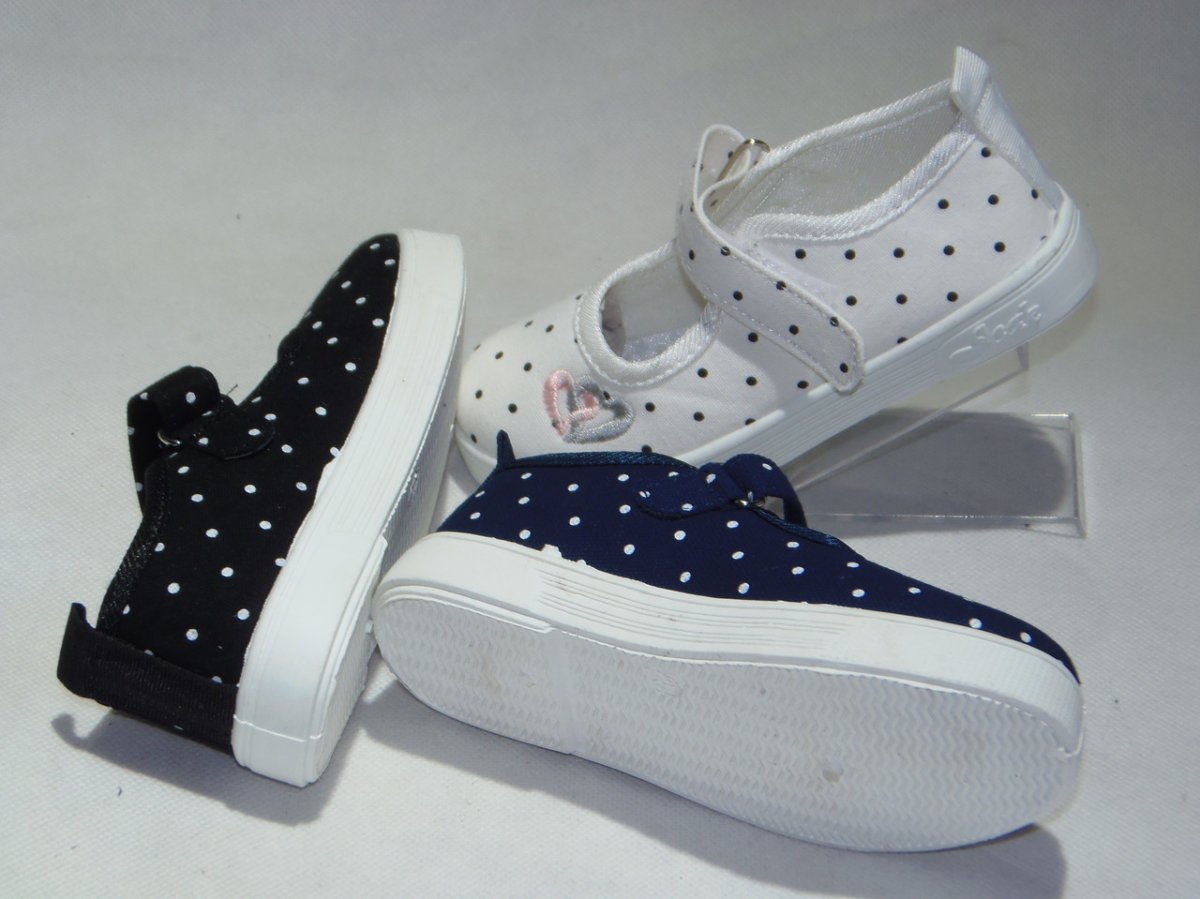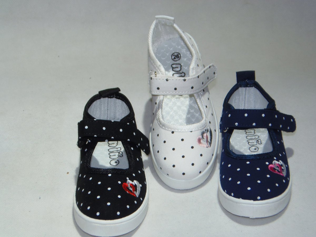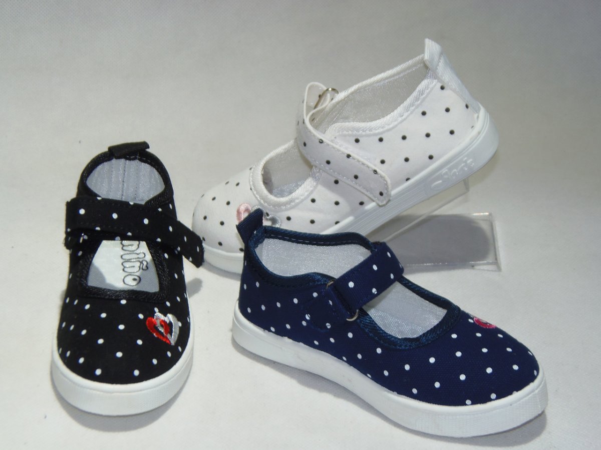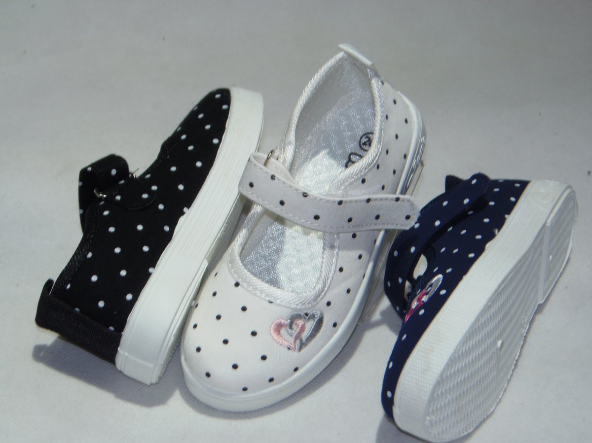 Balerinka dziecięca rzep, kropka z hafcikiem, podeszwa guma comfort, z miękkim materiałowym przodem .