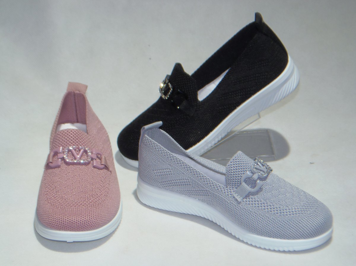 Balerinka materiałowa przewiewna z ozdobą z cyrkoniami, podeszwa guma comfort.
