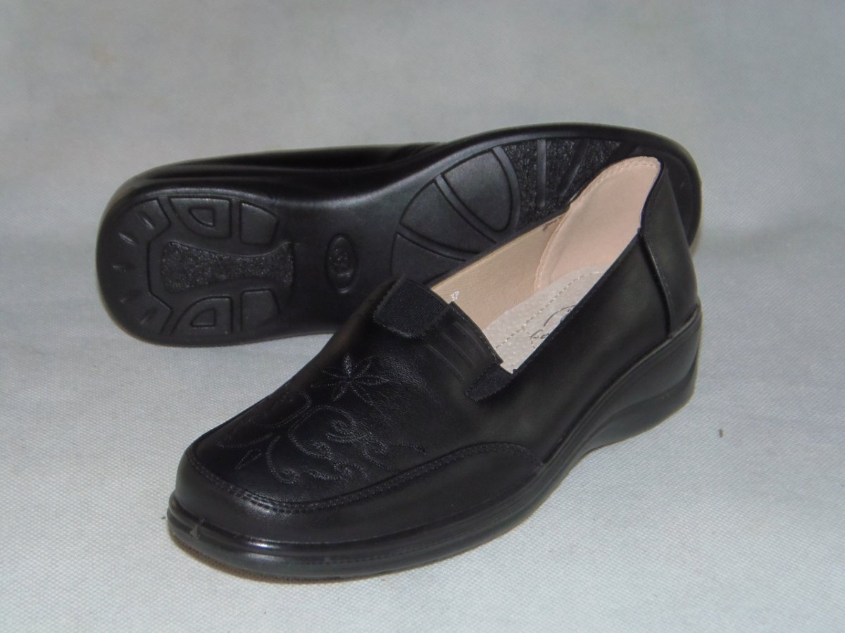 Półbuty damskie wsuwane gumka z przodu haftowane podeszwa klin.