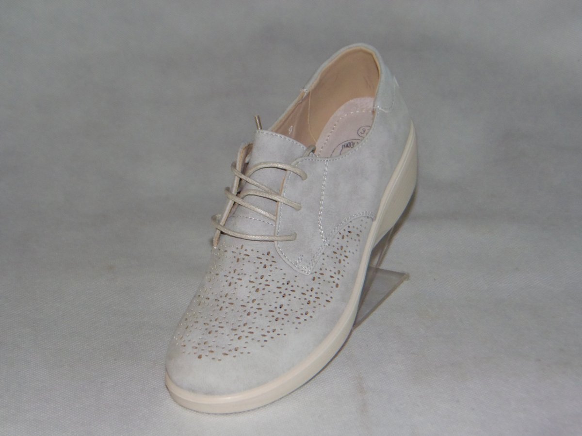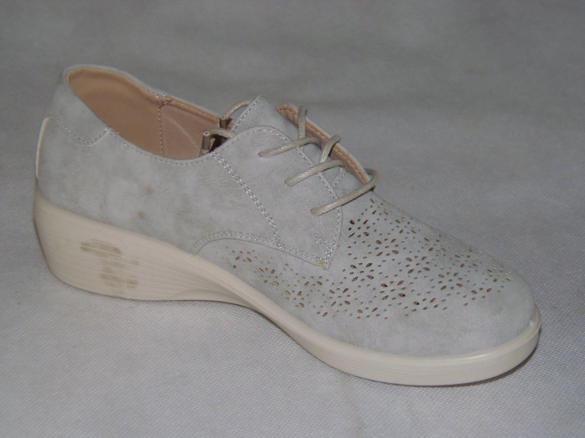 Półbuty damskie wiązane, dziurkowane letnie, podeszwa klin.
