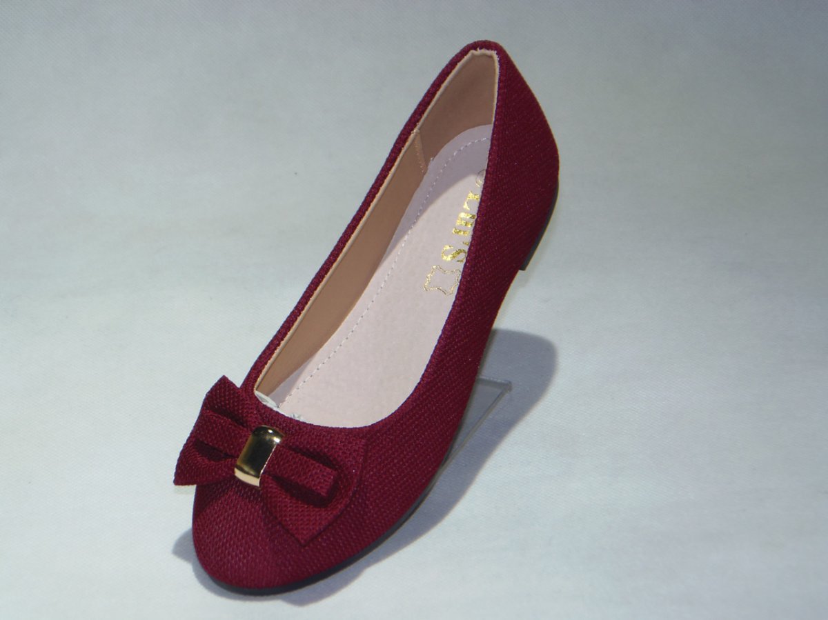 Balerinka materiałowa przewiewna z ozdobą metalową, podeszwa płaska.