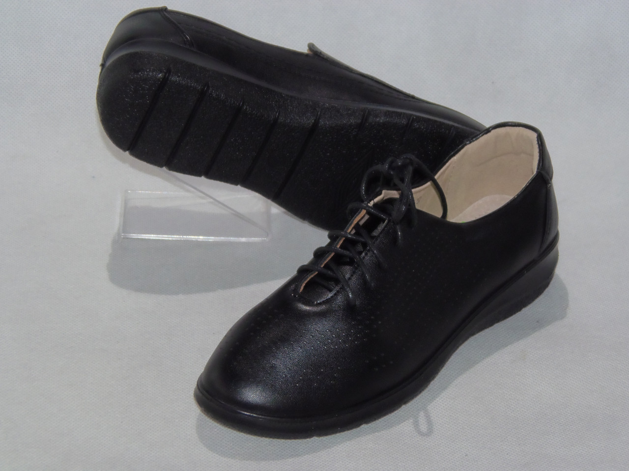 Półbuty damskie wiązane podeszwa klin.