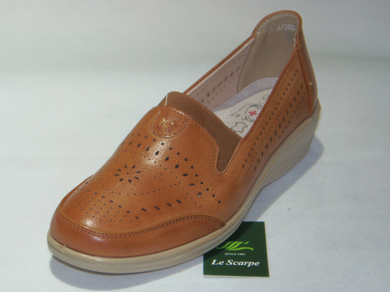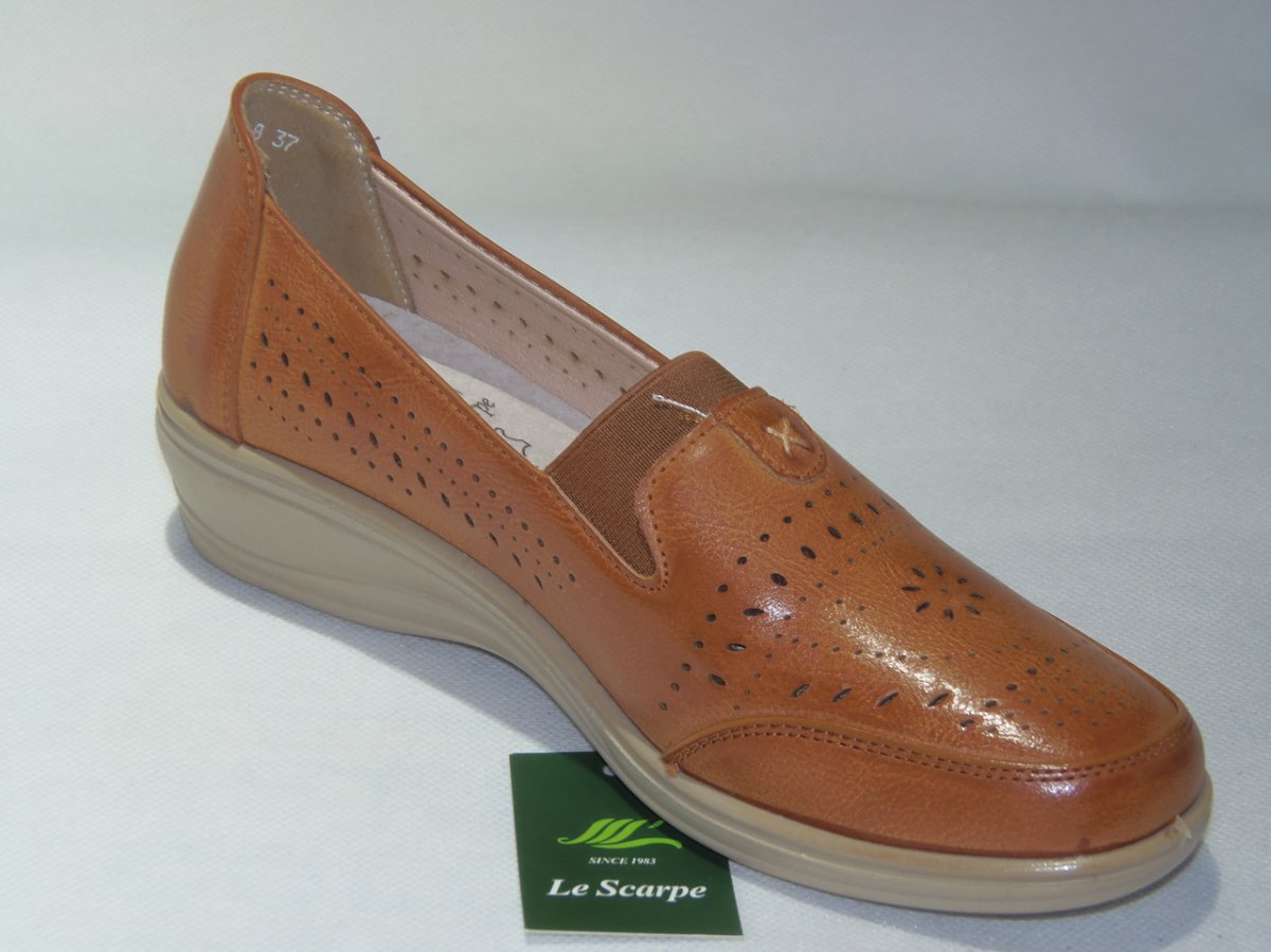 Półbuty damskie dziurkowane, wsuwane z gumką, podeszwa klin, wierzch PU.