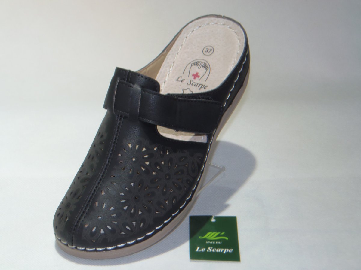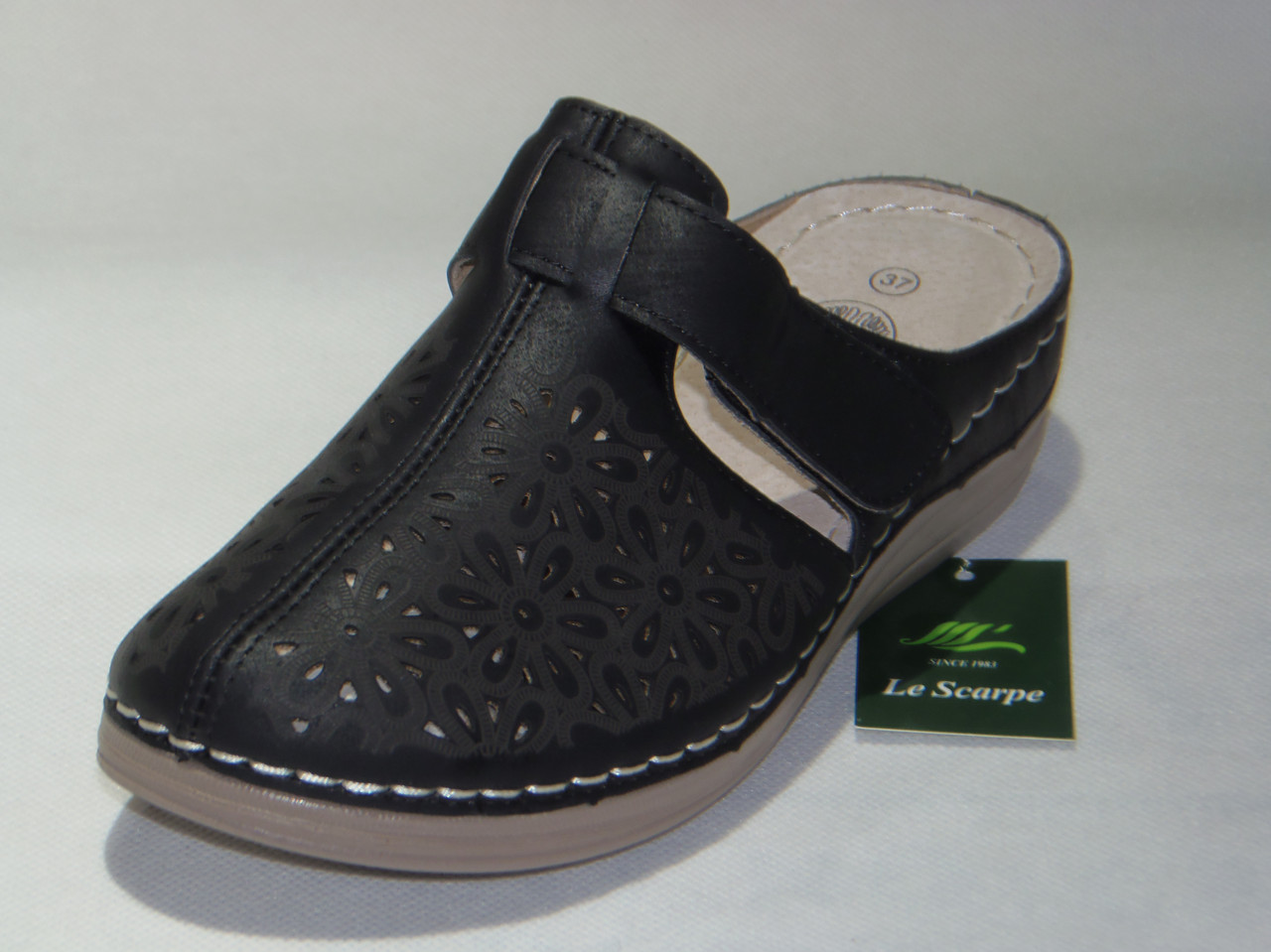 Klapki damskie płaskie z pełnym przodem, wierzch przewiewny PU z rzepem.