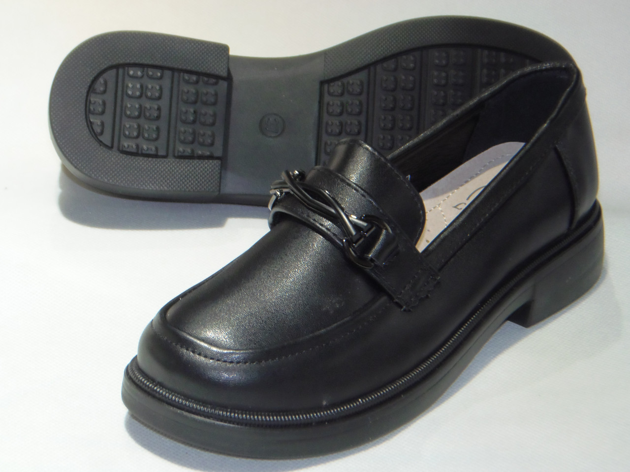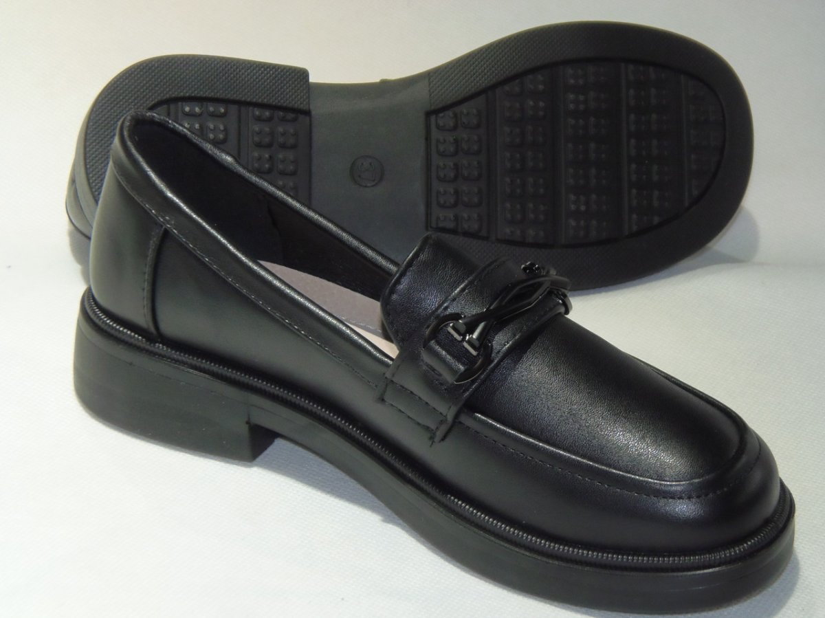 Półbuty damskie wsuwane ozdoba metalowa i obcasik.