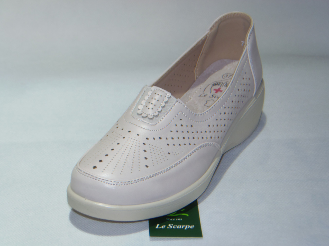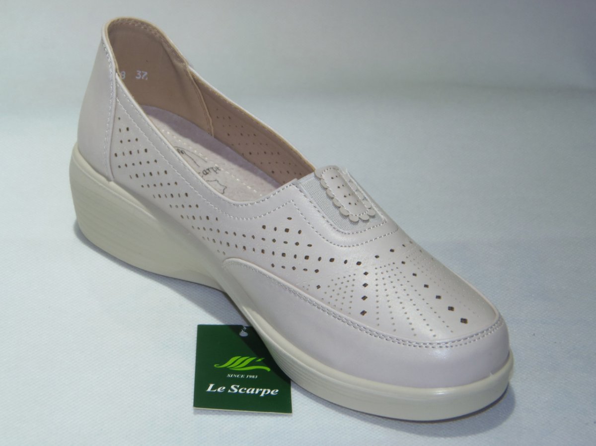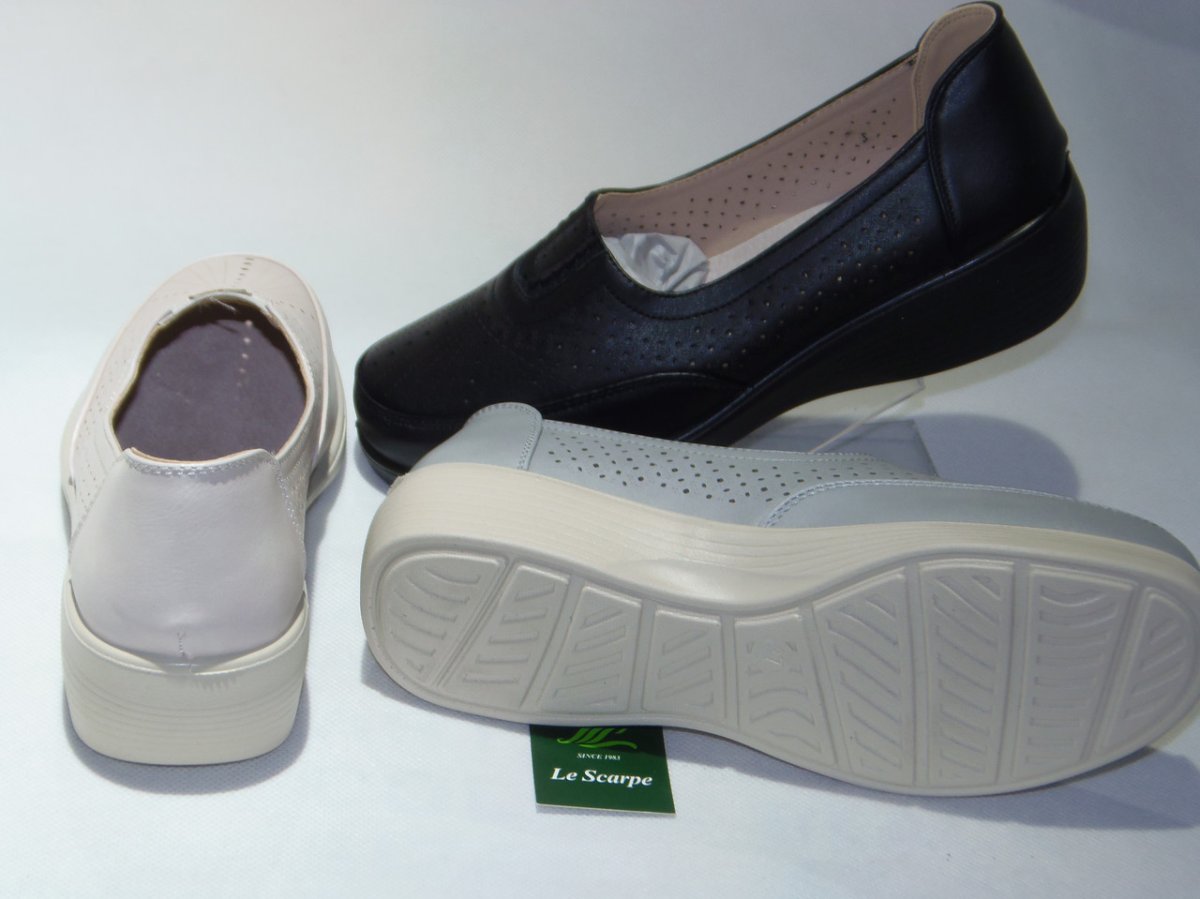Półbuty damskie wsuwane z gumką, podeszwa klin, z dziurkami na wierzchu PU.