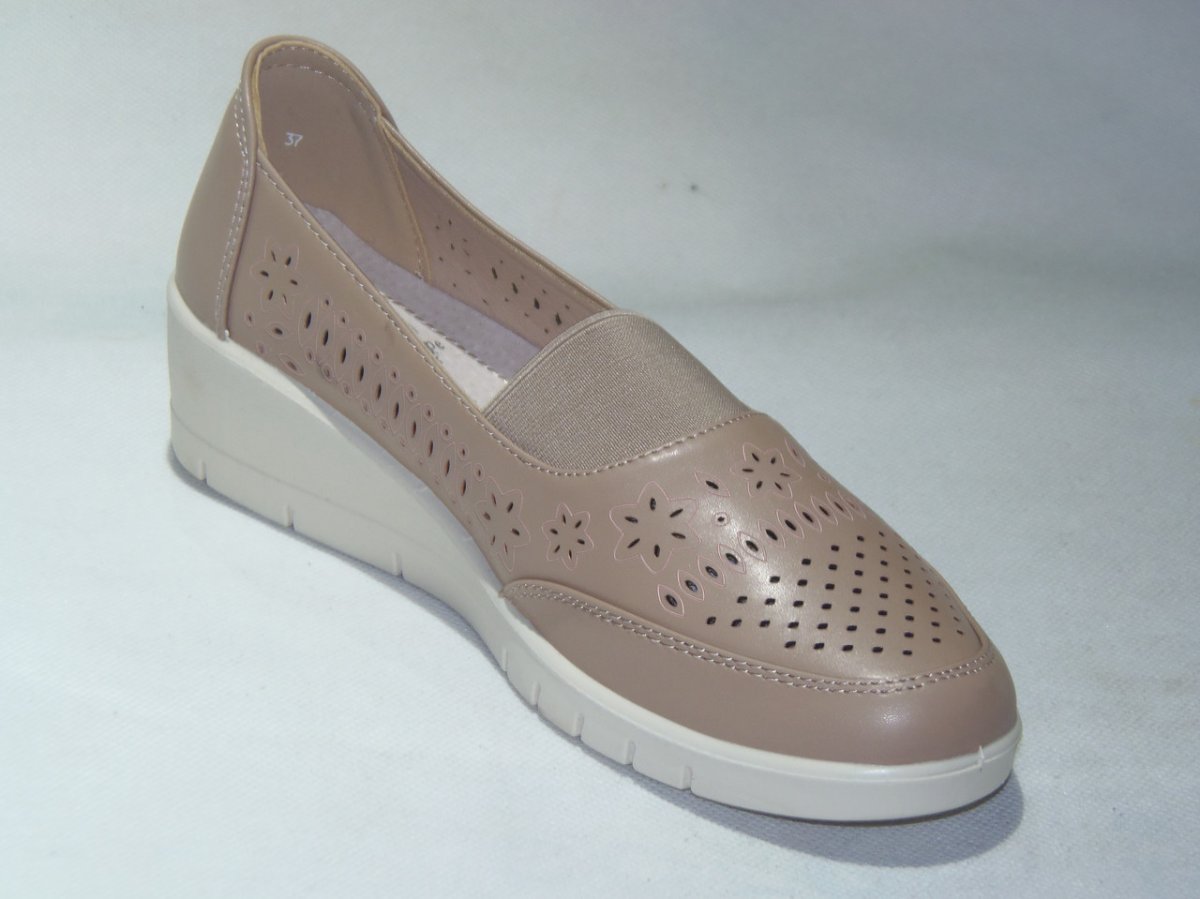Półbuty damskie wsuwane z gumką, podeszwa klin, z dziurkami na wierzchu PU.