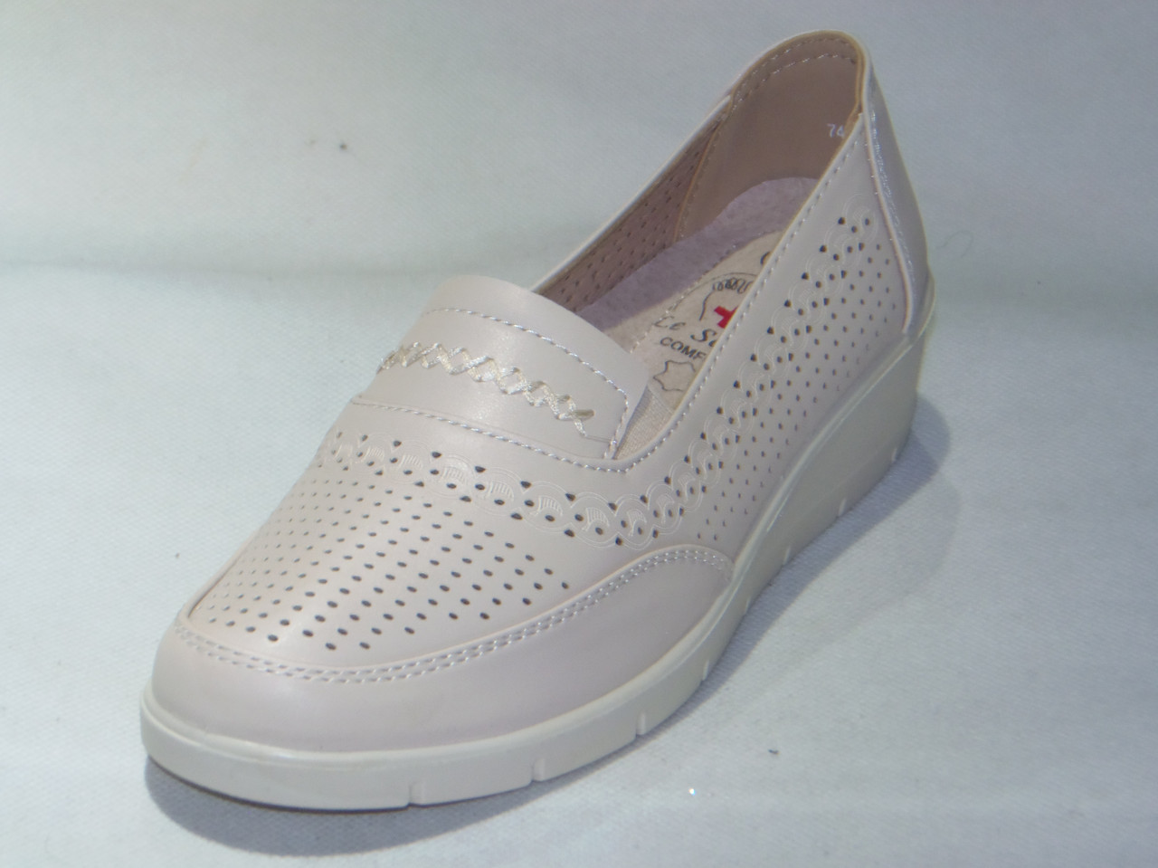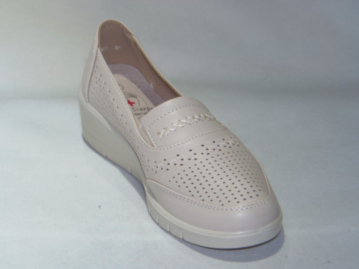 Półbuty damskie wsuwane z gumką, podeszwa klin, z dziurkami na wierzchu PU.