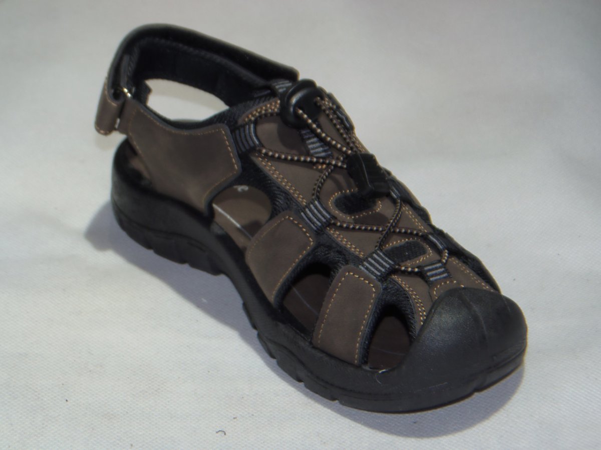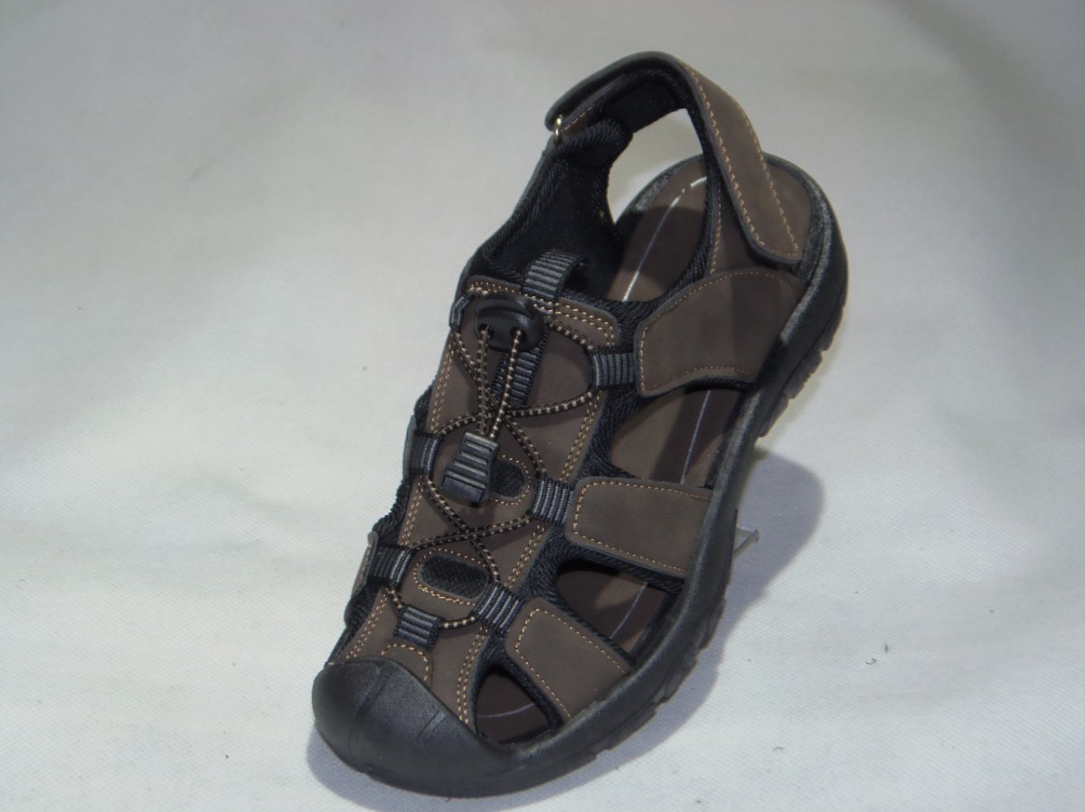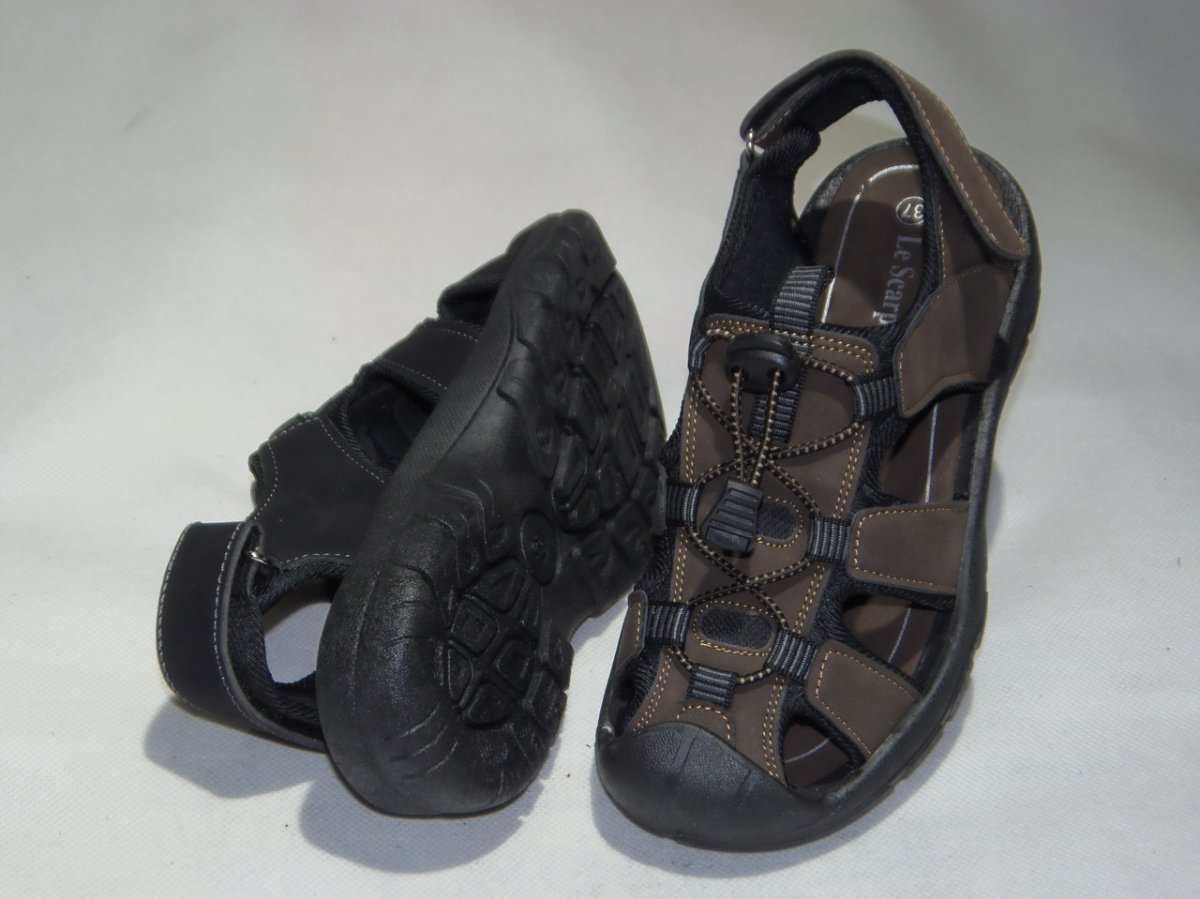 Sandały młodziezowe z pełnym przodem i gumowym noskiem.