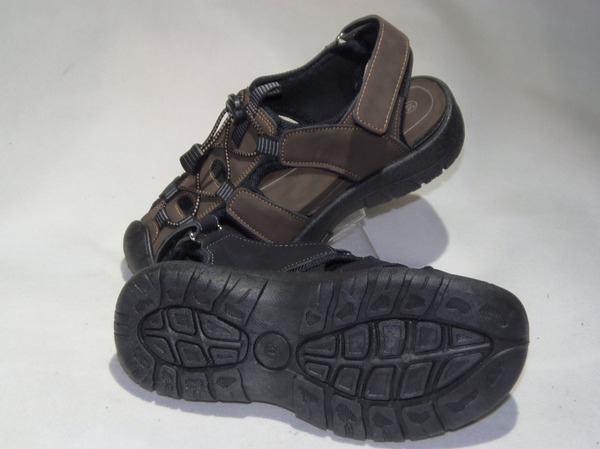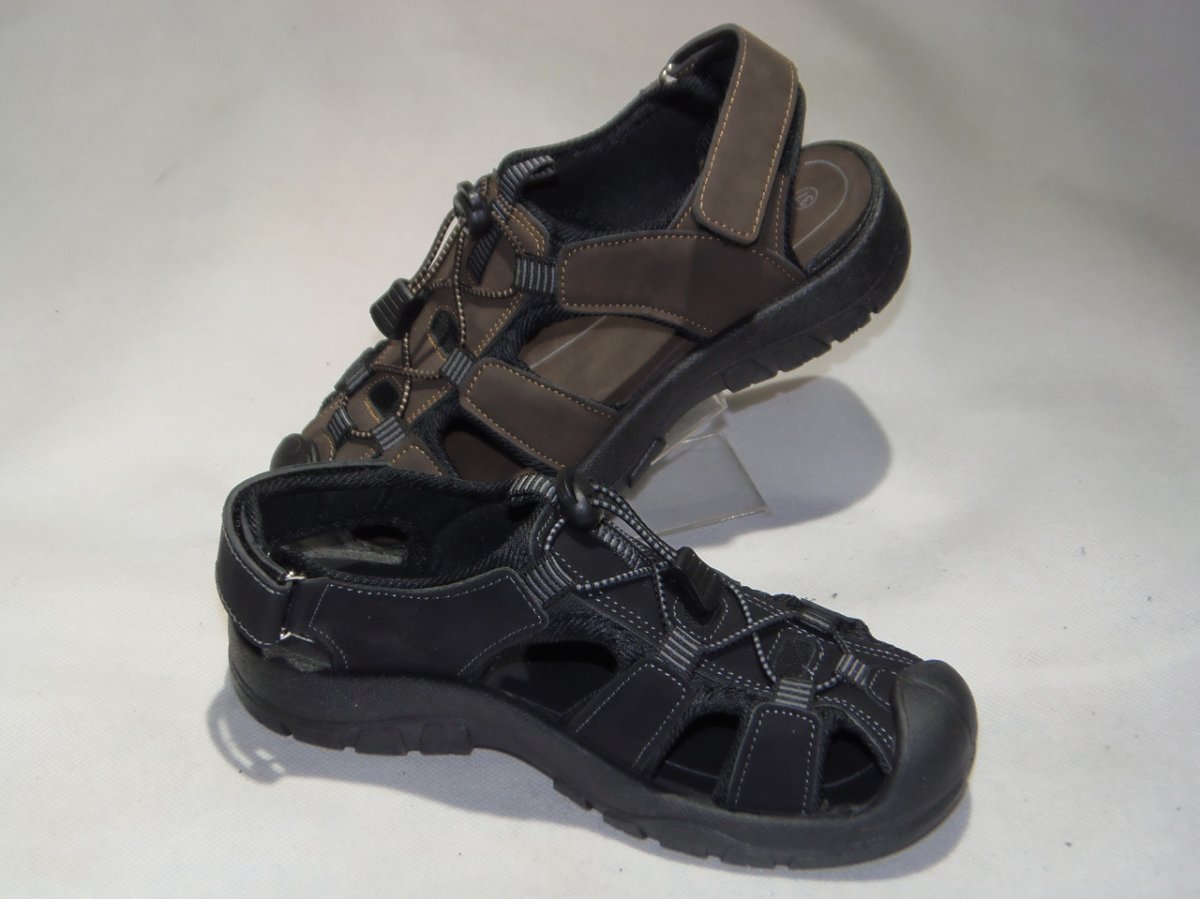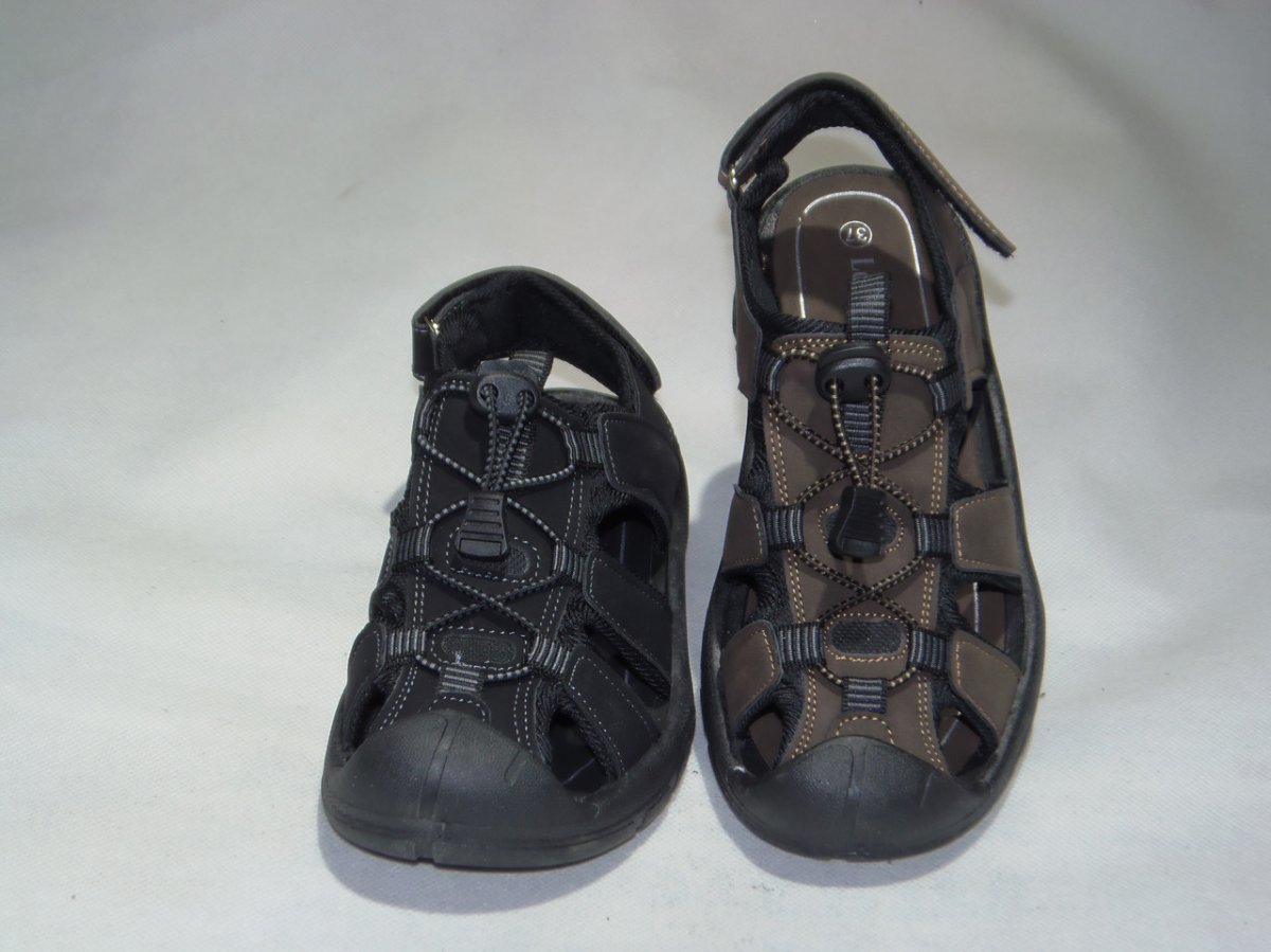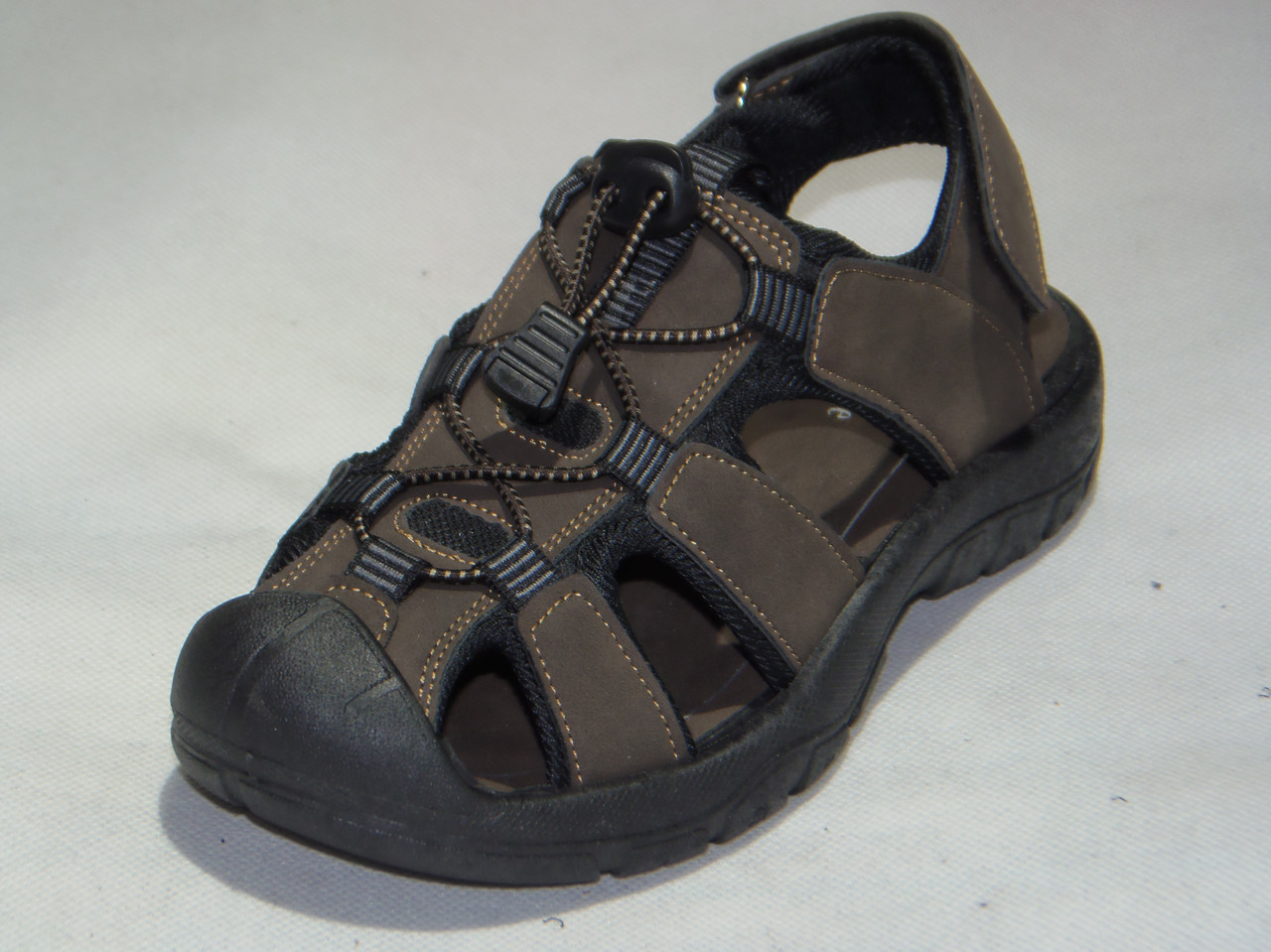 Sandały młodziezowe z pełnym przodem i gumowym noskiem.