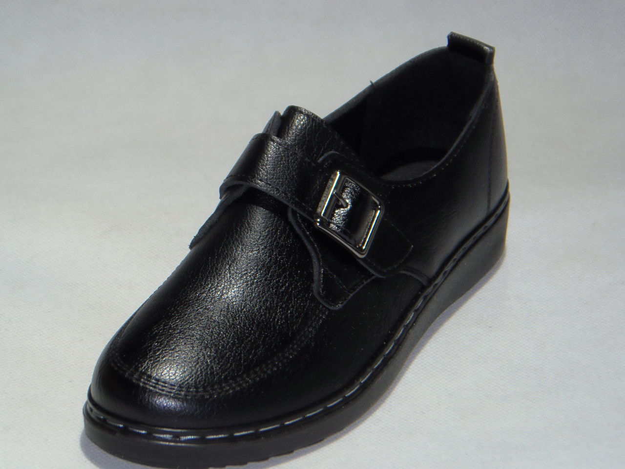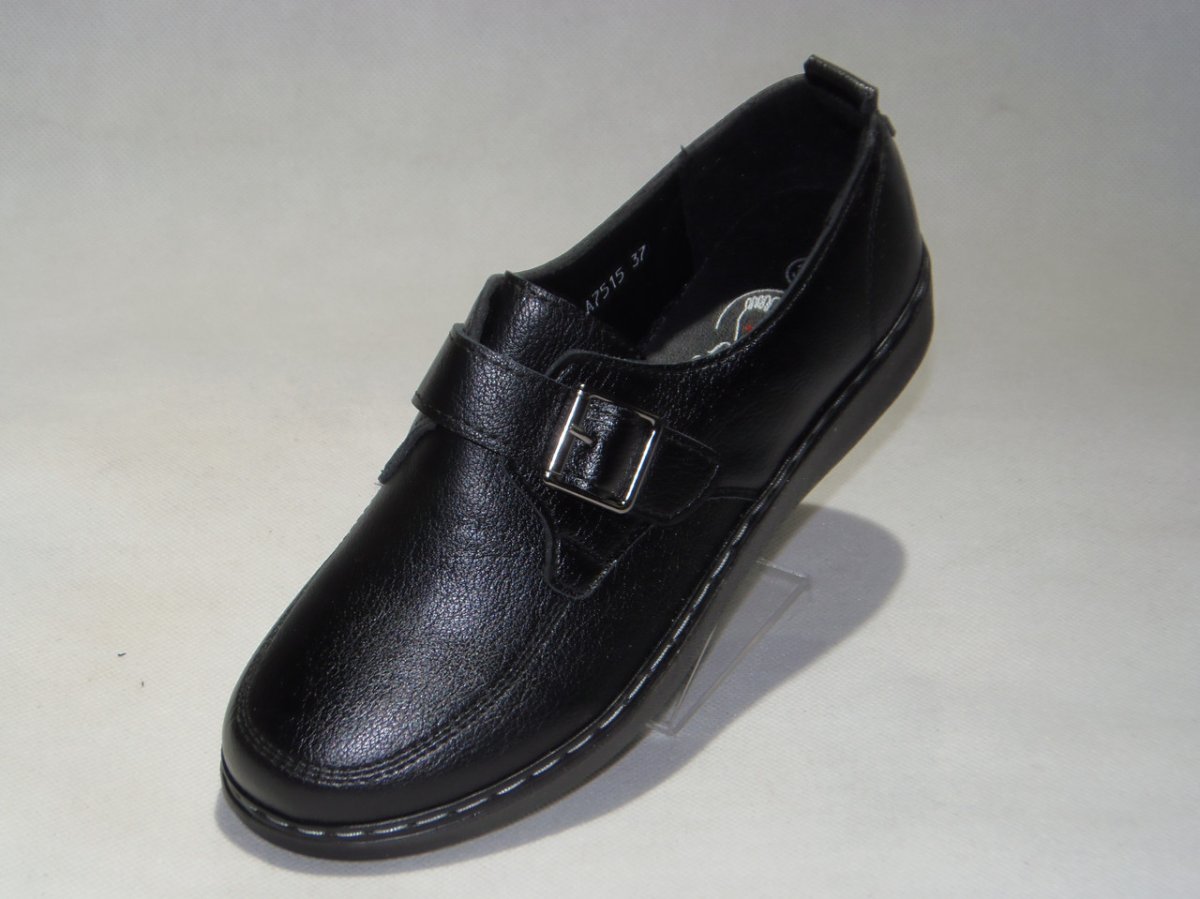 Półbuty damskie wsuwane z klamerką, podeszwa płaska szyta comfort.