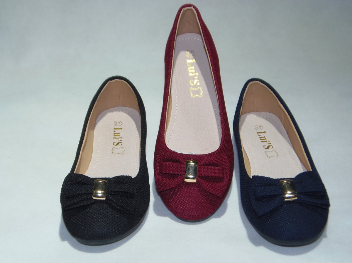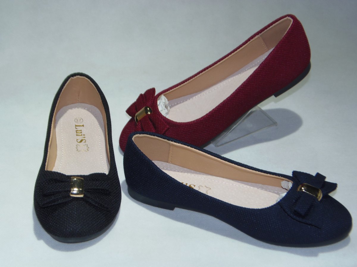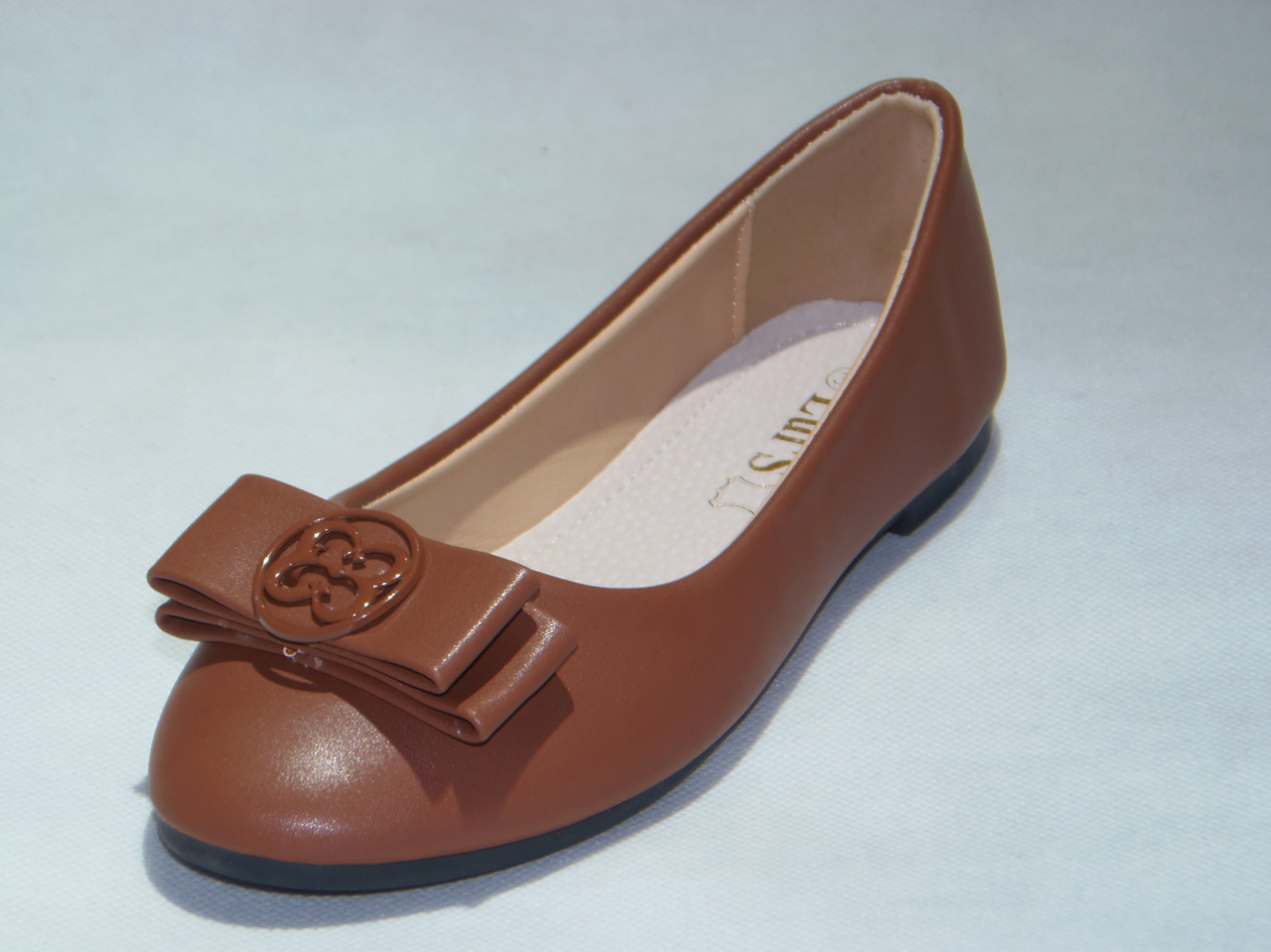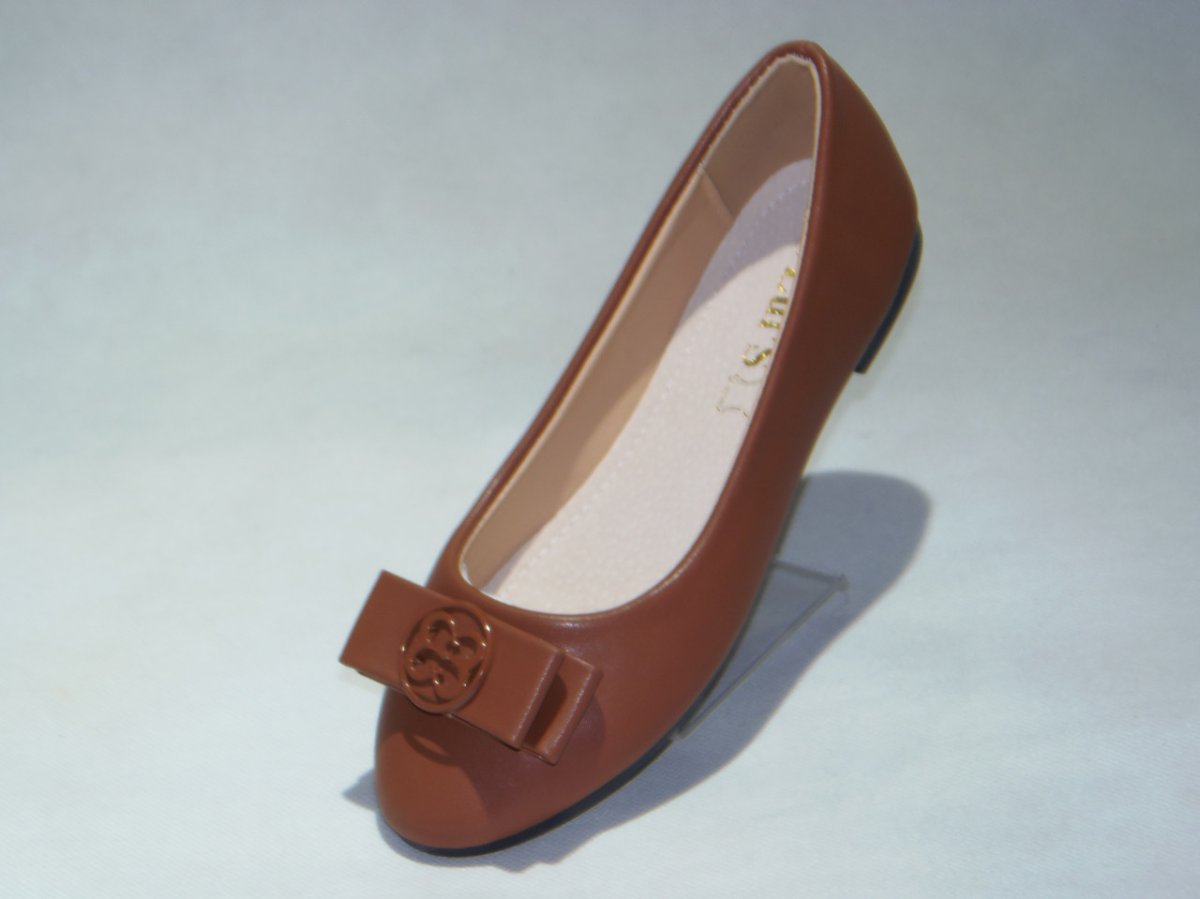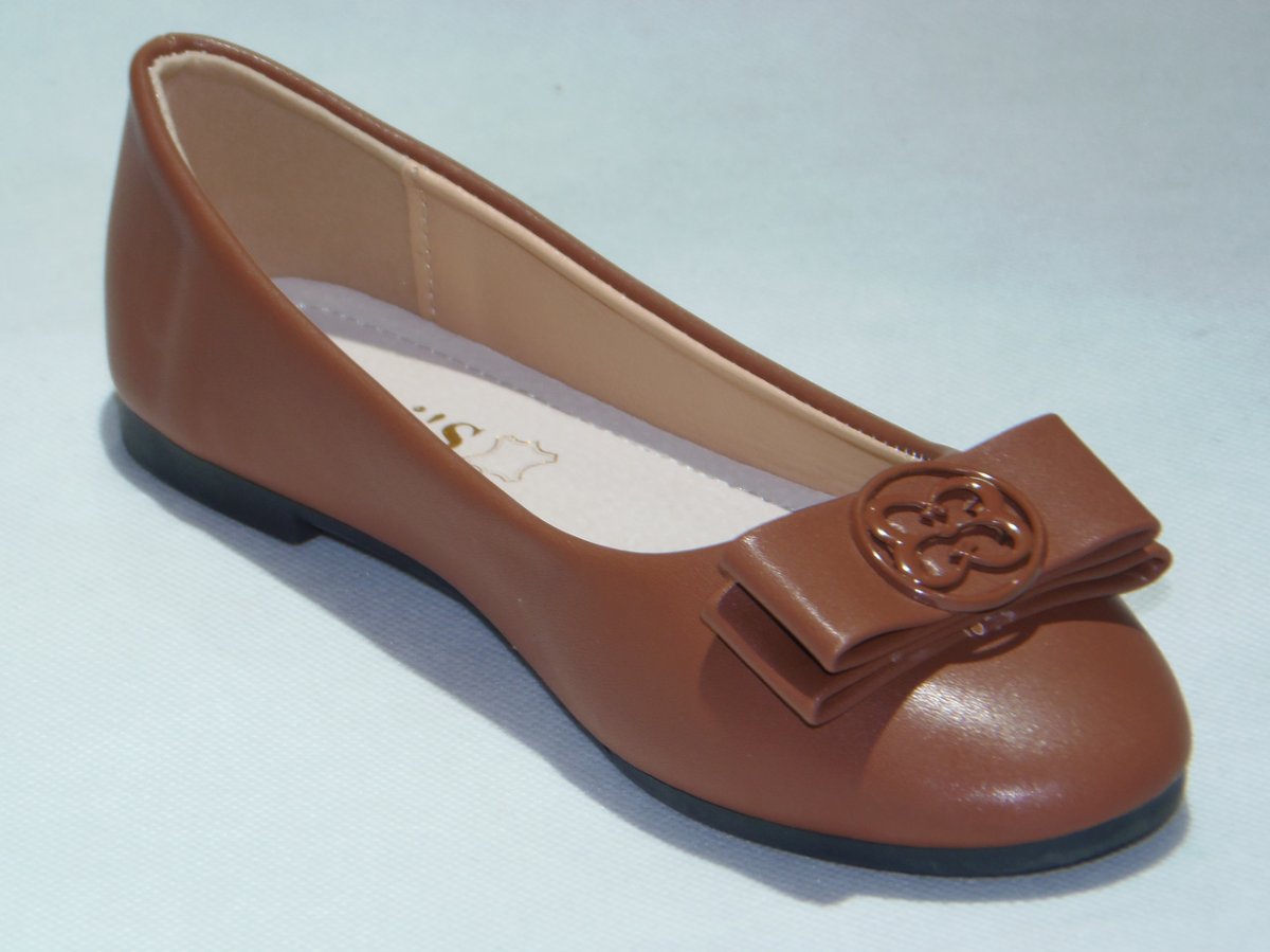 Balerinka PU z ozdobną patką, podeszwa płaska.