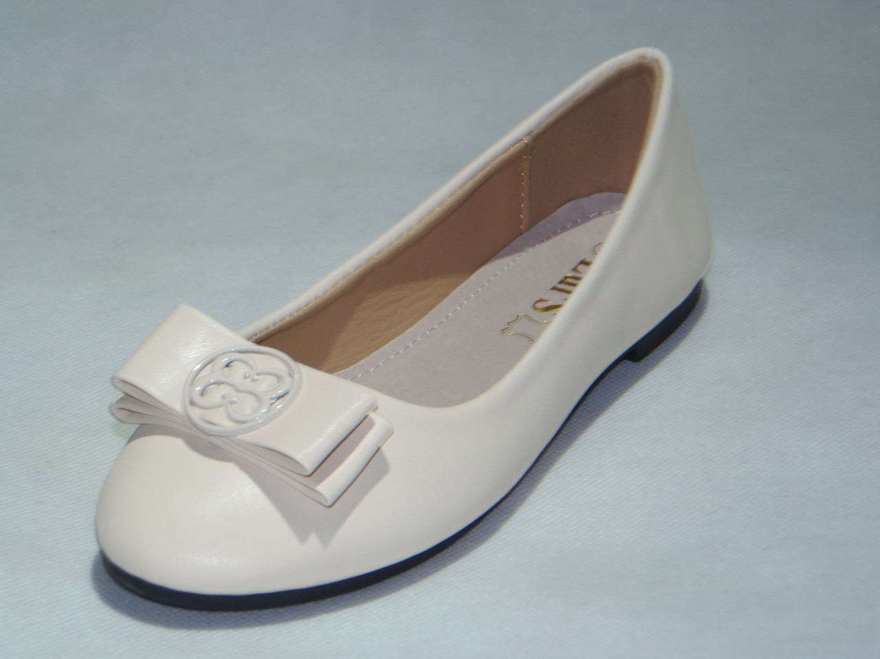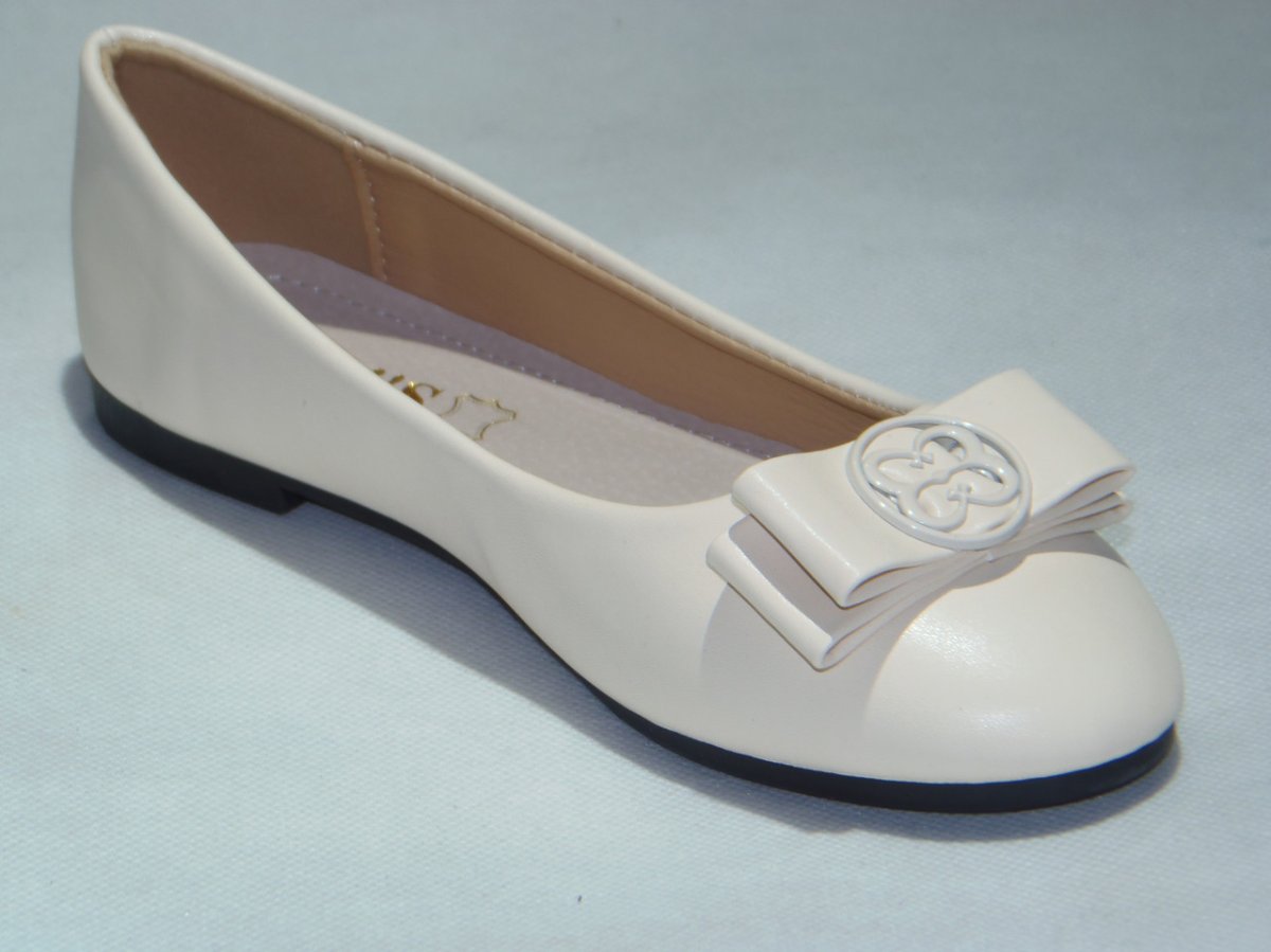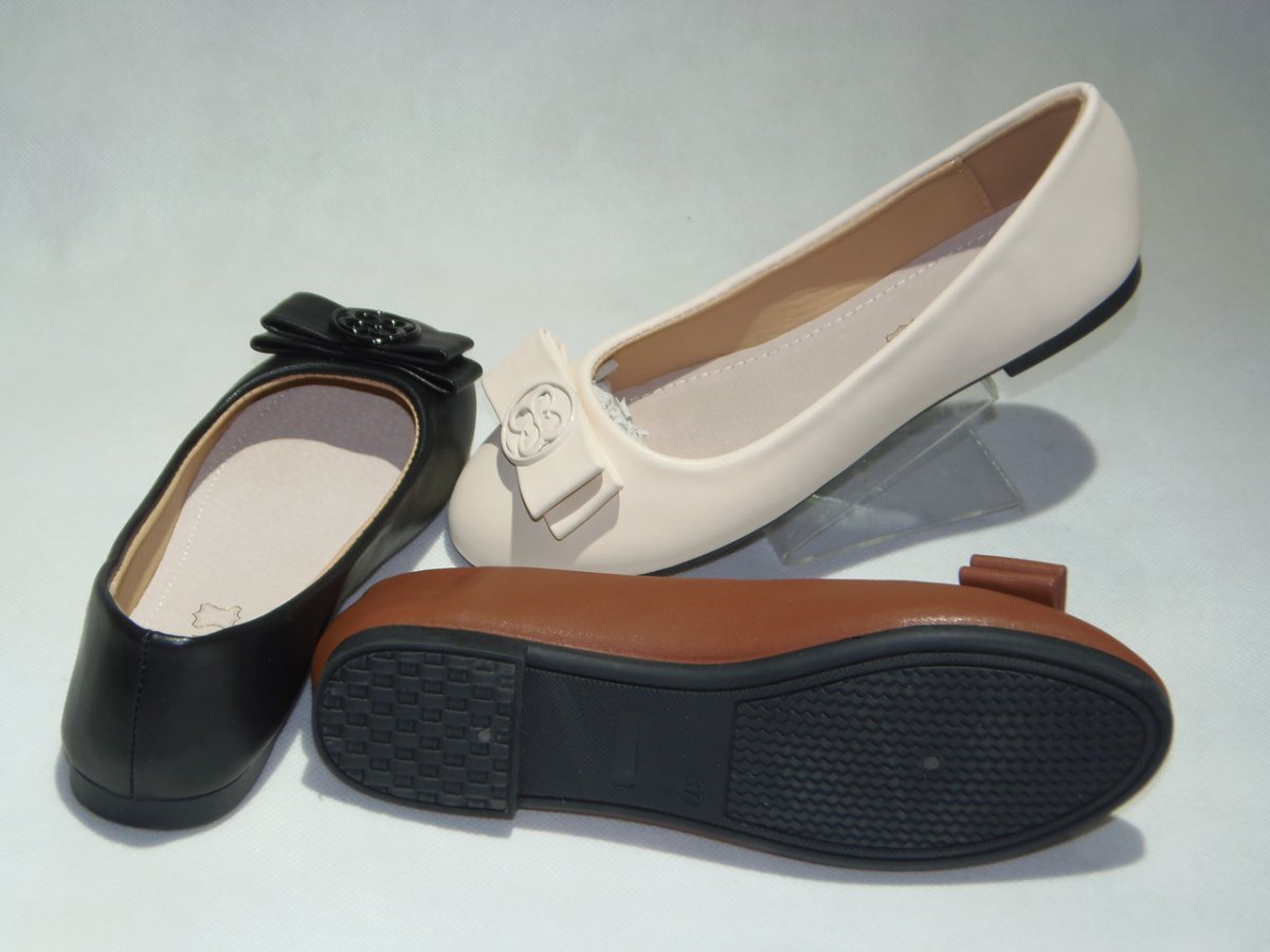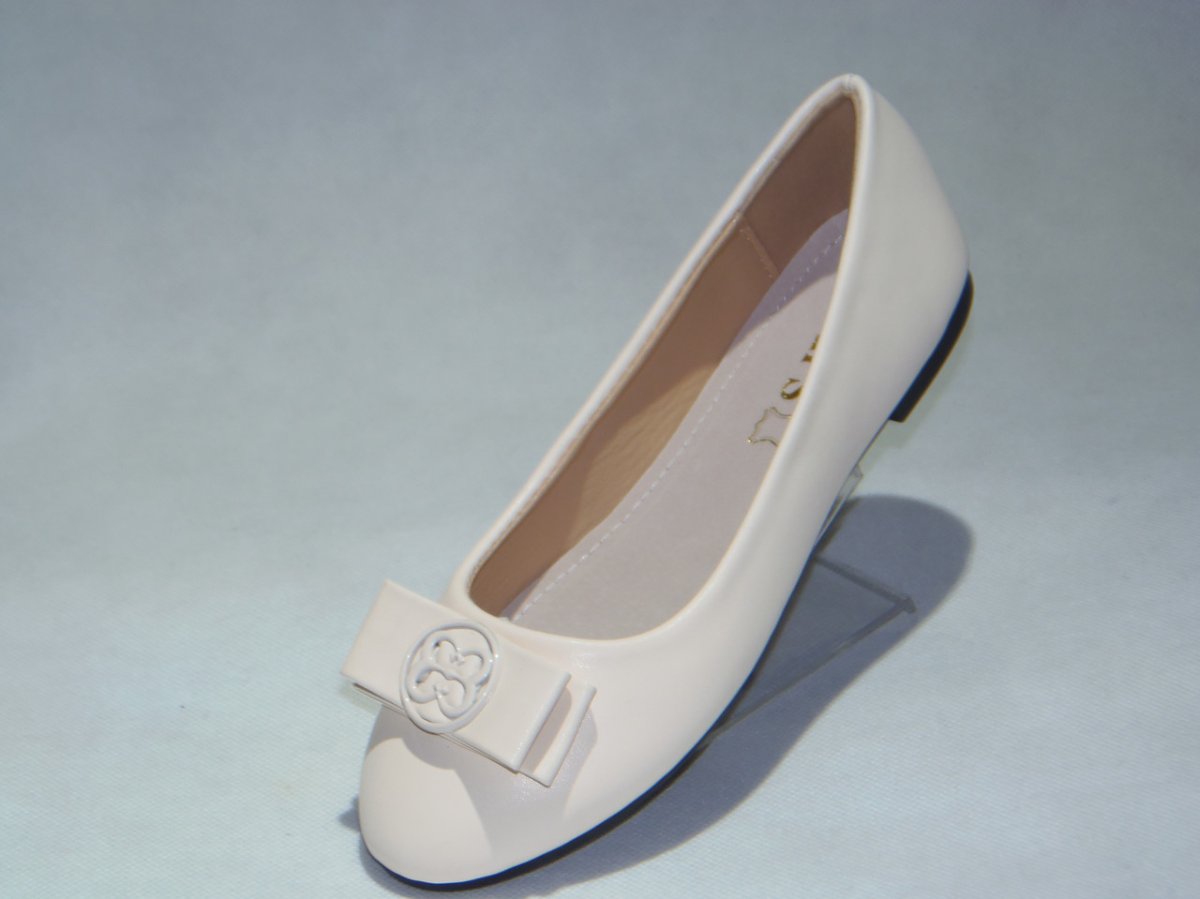 Balerinka PU z ozdobną patką, podeszwa płaska.