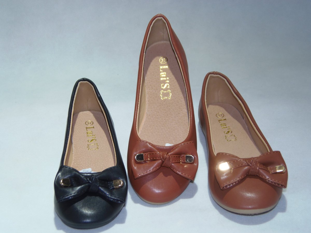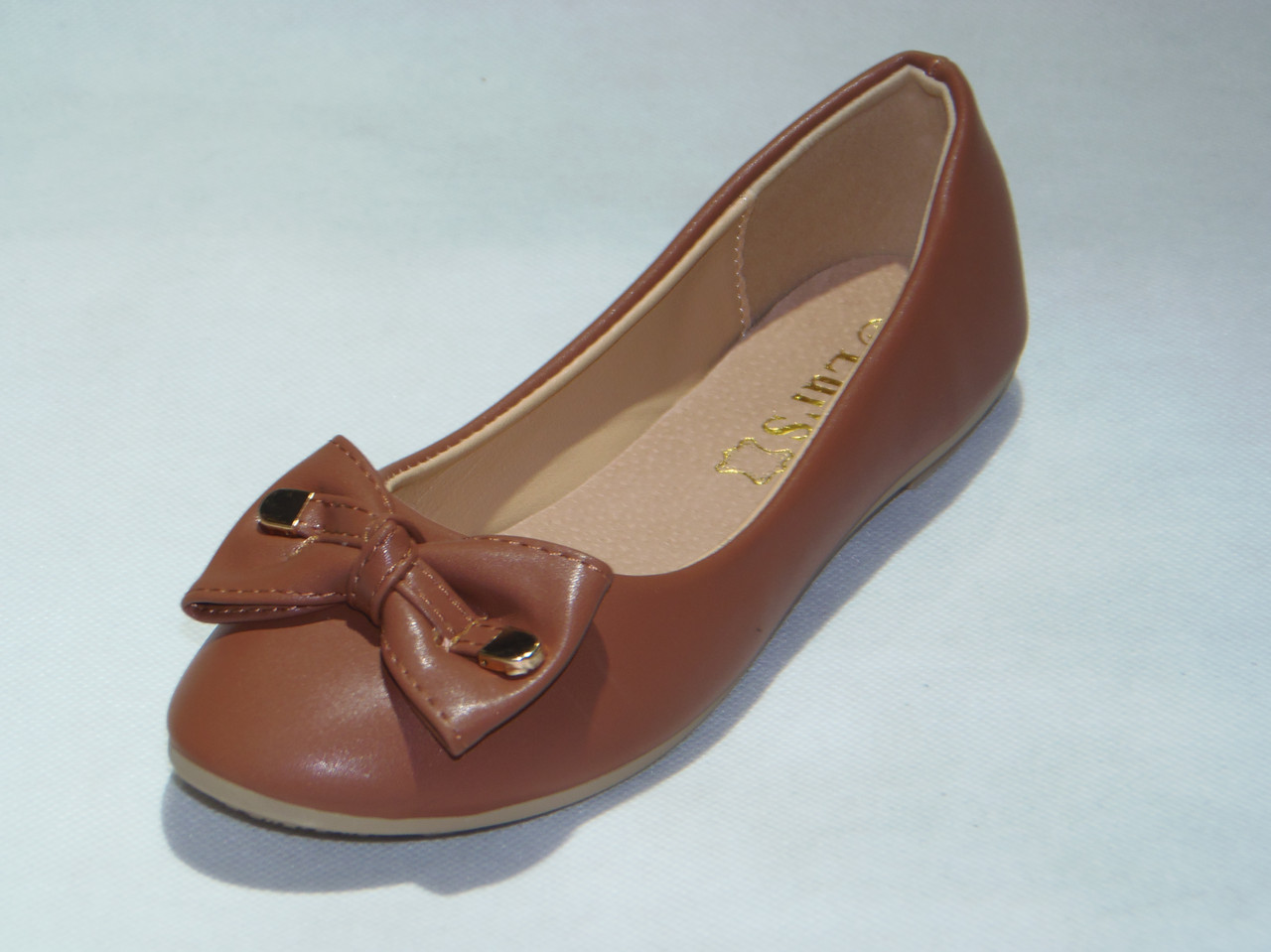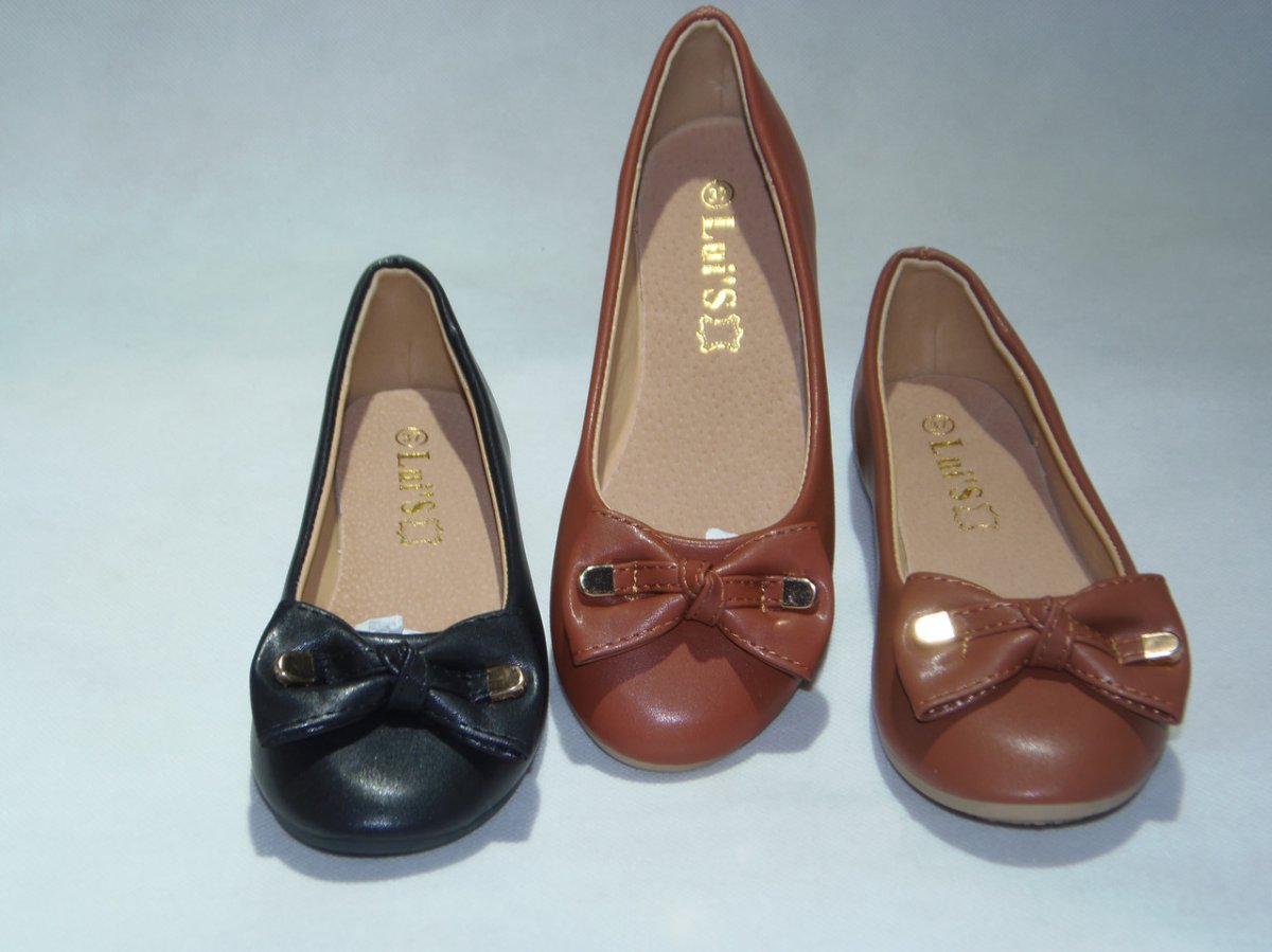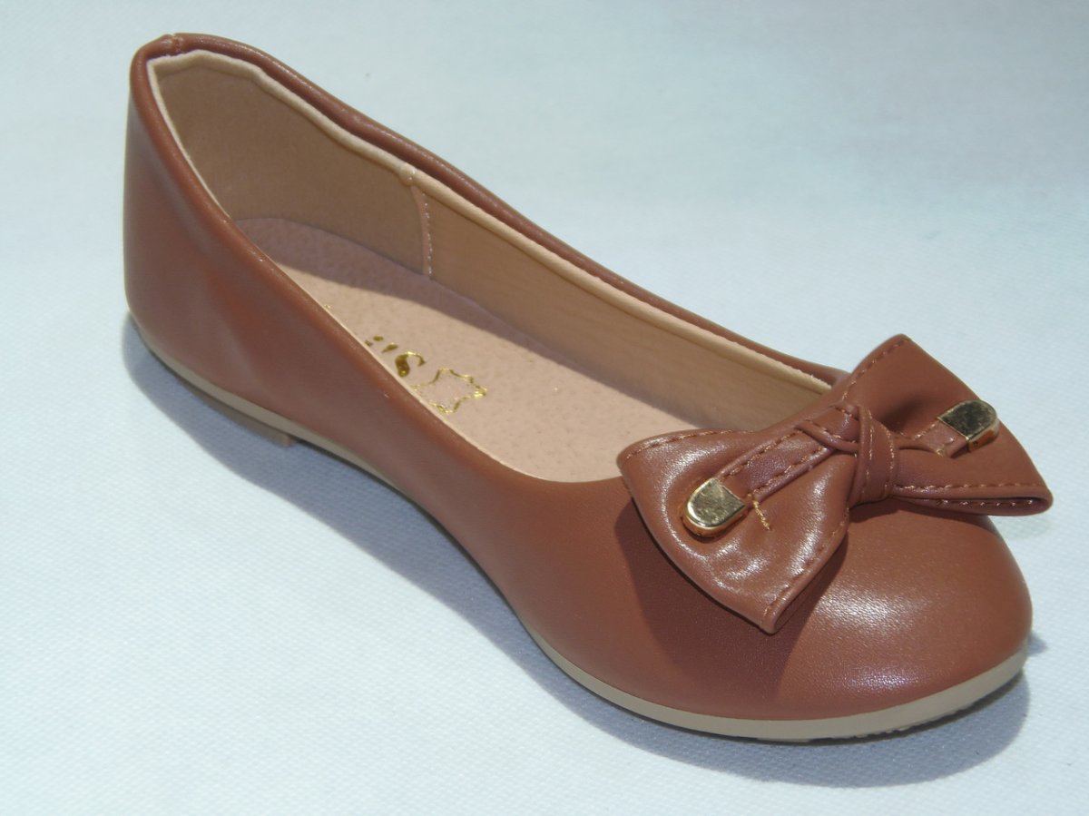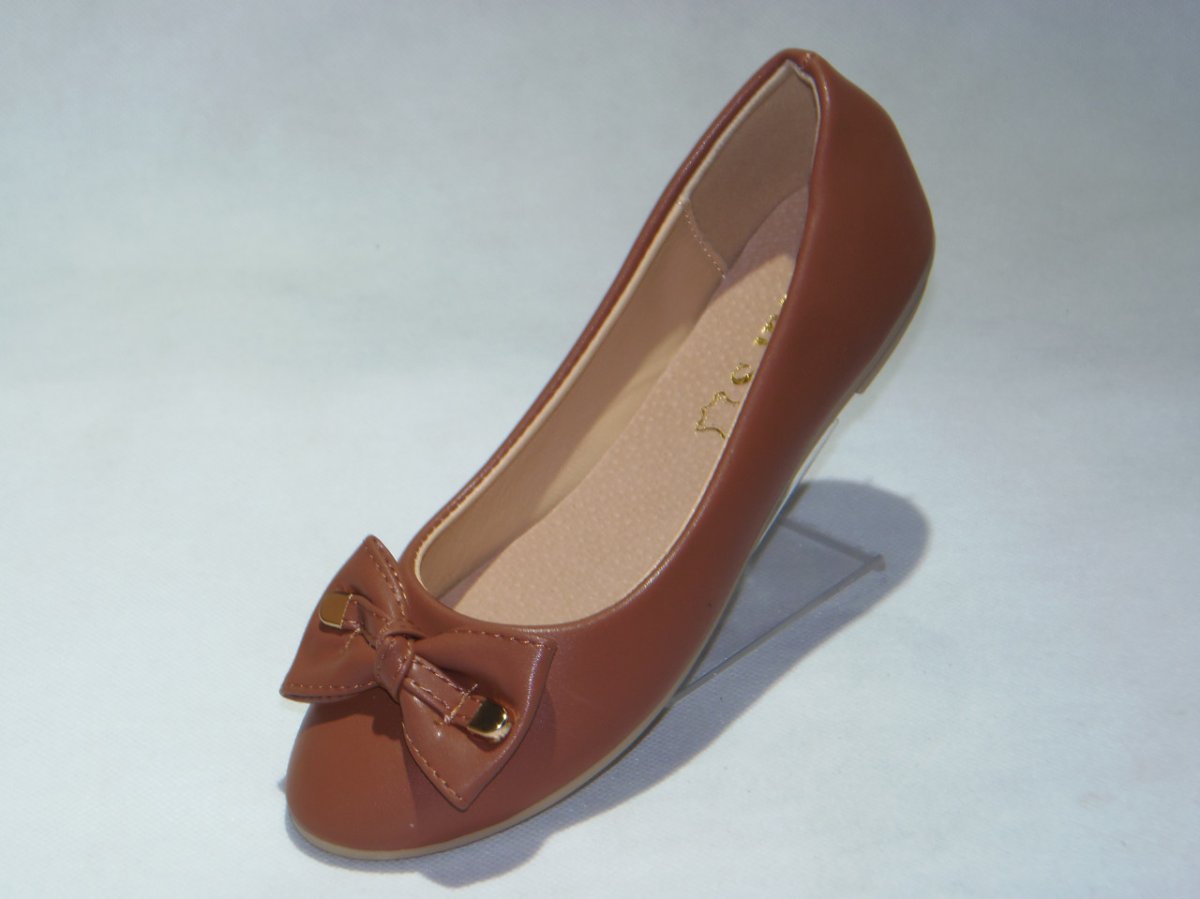 Balerinka PU z ozdobną patką i kokardką z metalowym zakończeniem, podeszwa płaska.