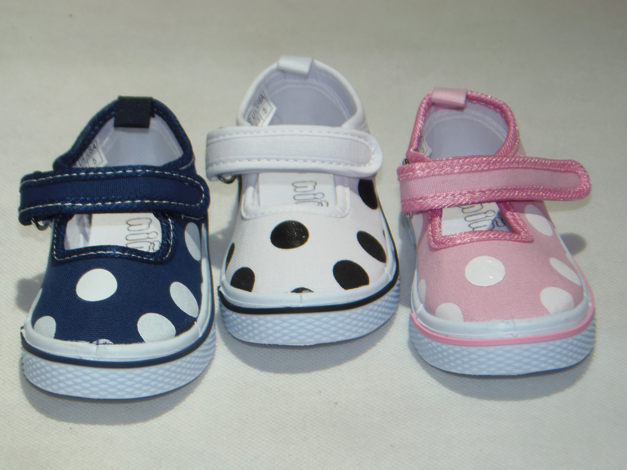Balerinka wsuwana kropka pasek z rzepem biała podeszwa.