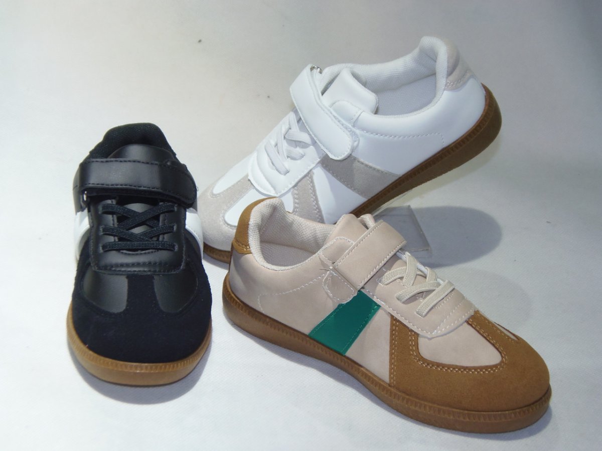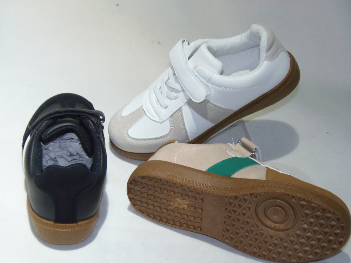 Buty młodzieżowe dzieciewczęce podeszwa guma płaska, spód kauczukowy, wierzch PU, rzep i imitacja sznurówki.