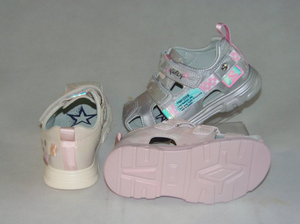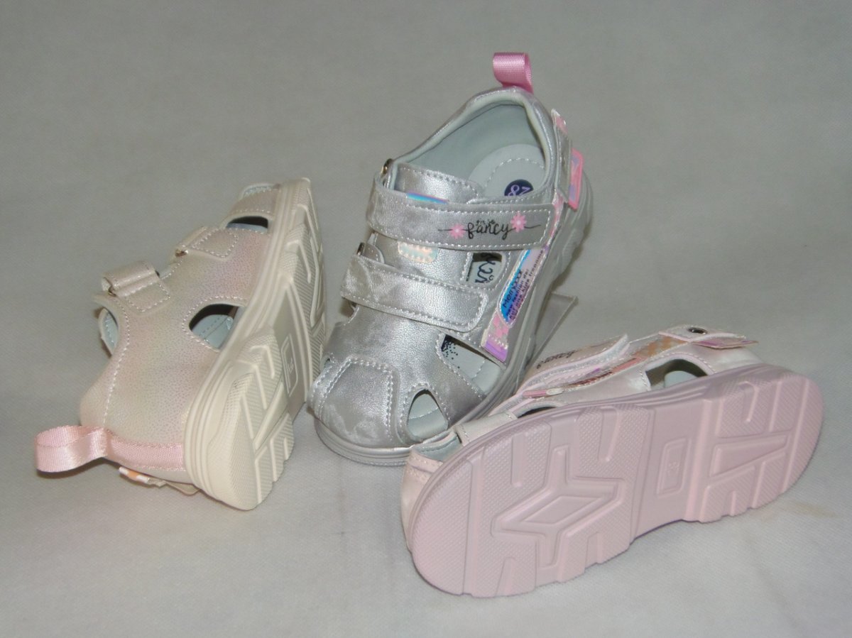 Sandałki dziecięce sportowe w rozmiarach od 27 do 32 dziewczęce, podeszwa pianka, ze sztywną piętką i zakrytym noskiem.