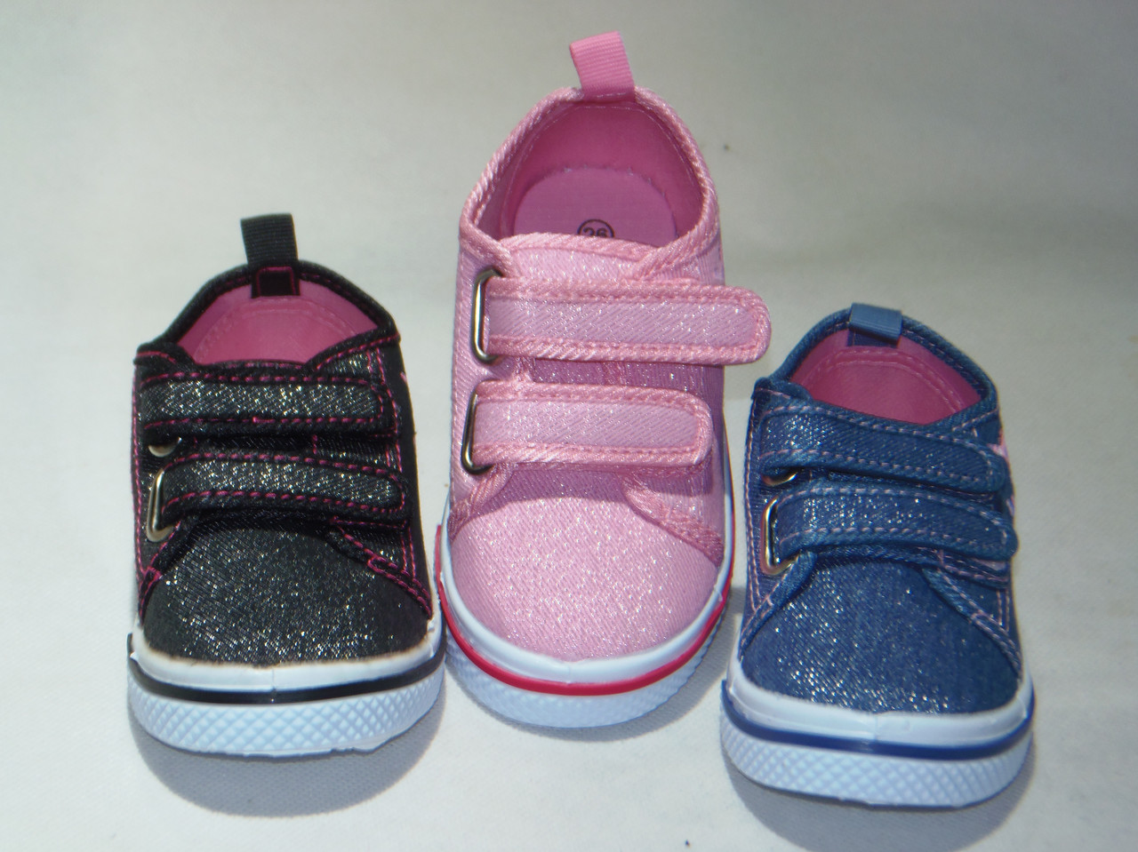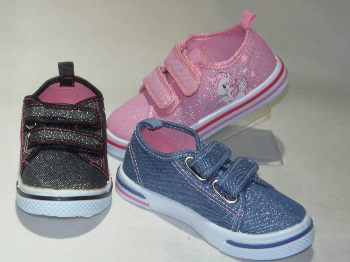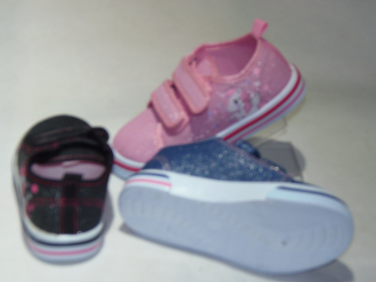 Póltrampki dziewczęce na dwa rzepy, biała podeszwa, wierzch materiałowy.