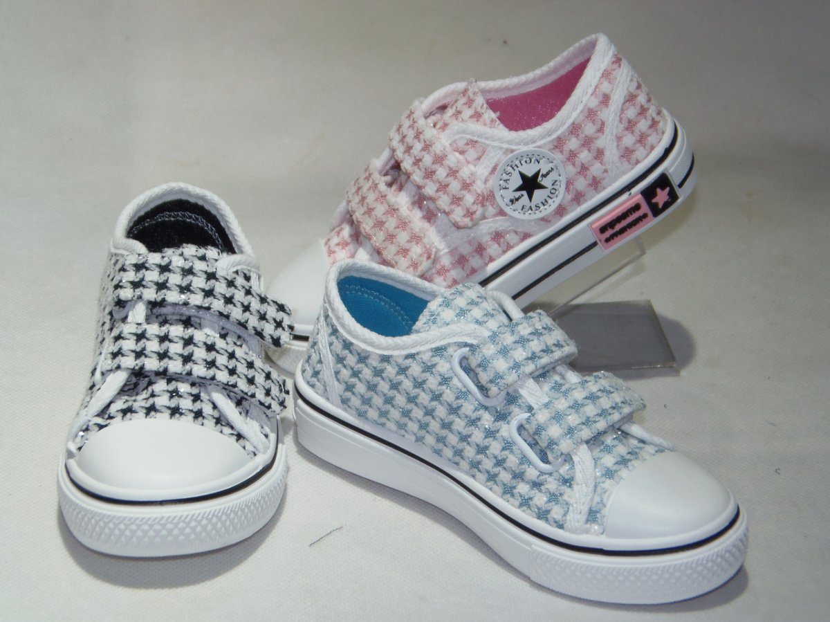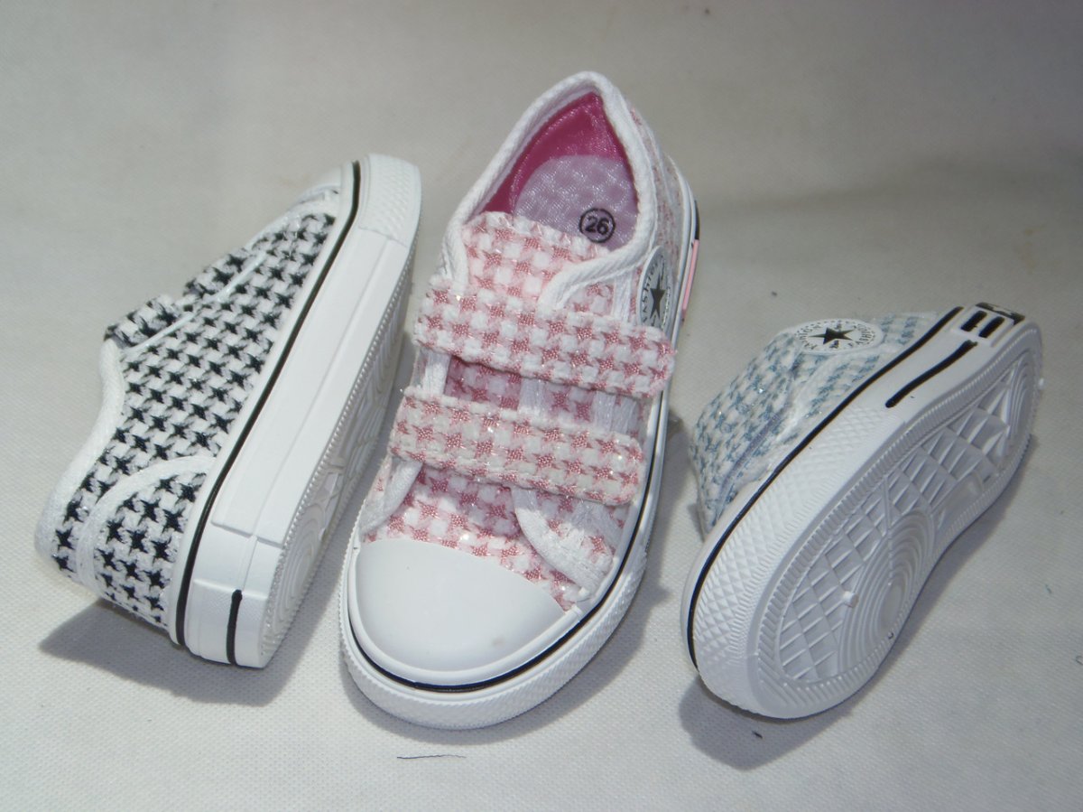 Obuwie sportowe tekstylne dziecięce w rozmiarach od 25 do 30.