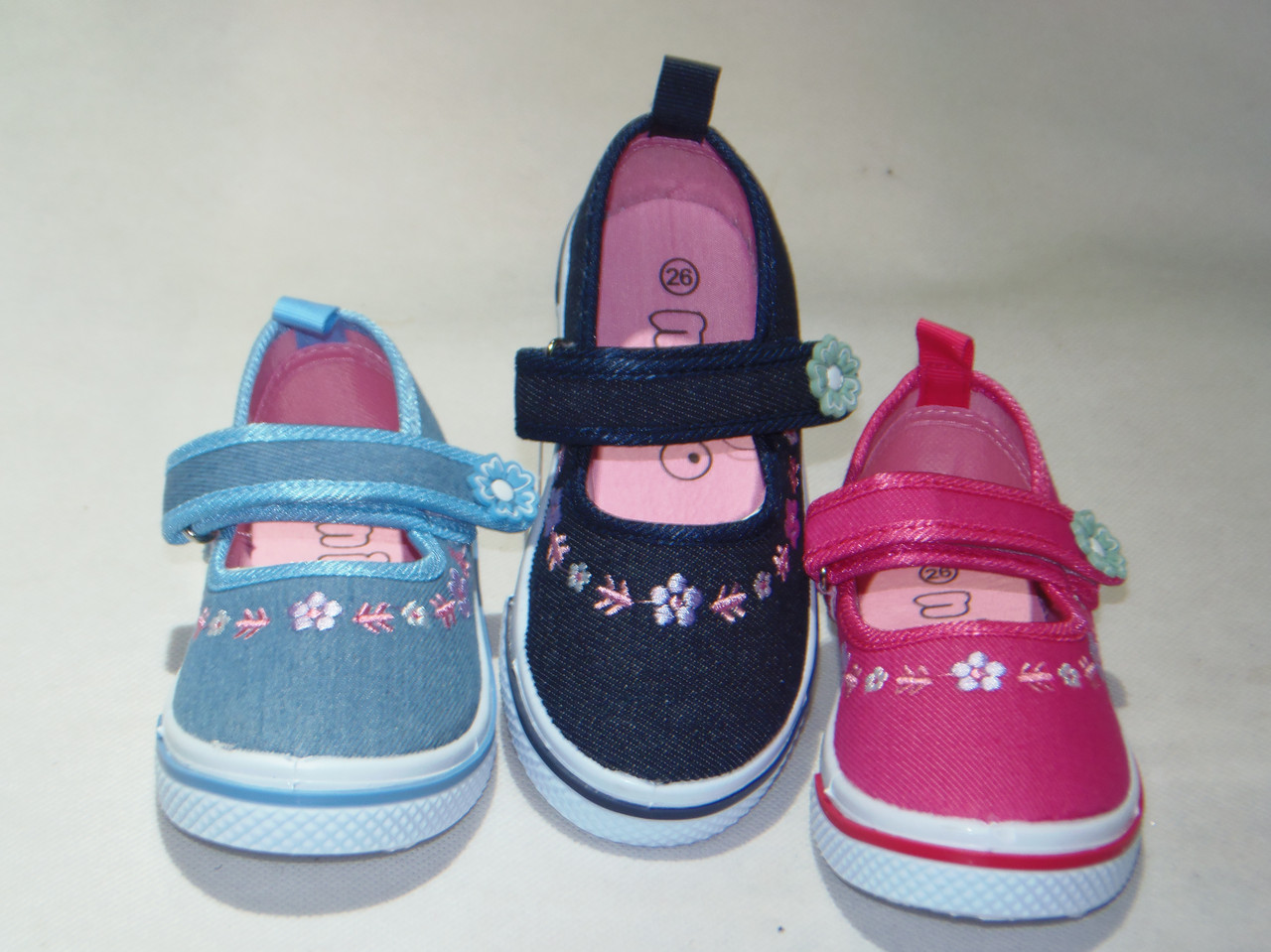 Balerinka dziewczęce na rzep, biała podeszwa, wierzch materiałowy.