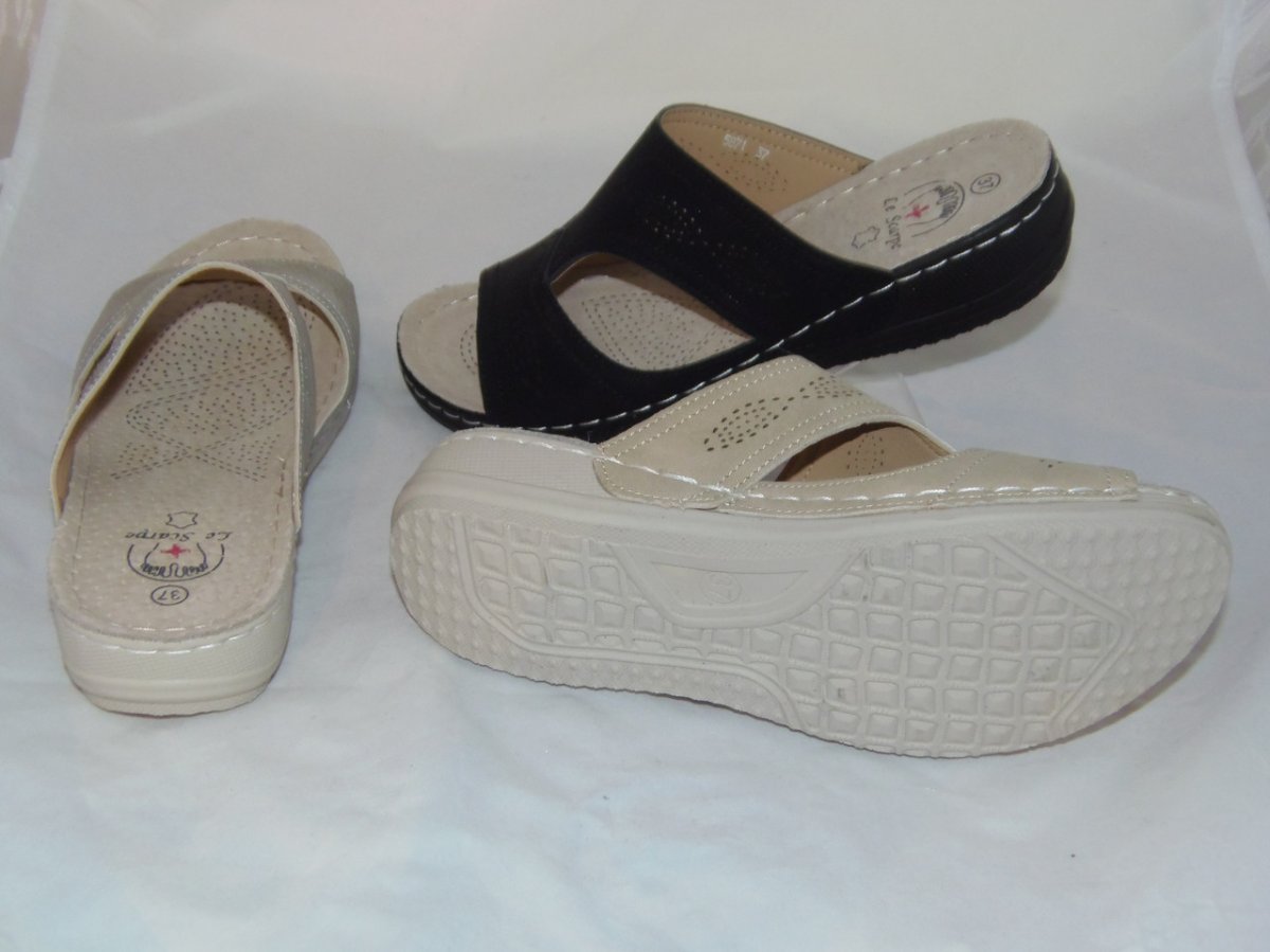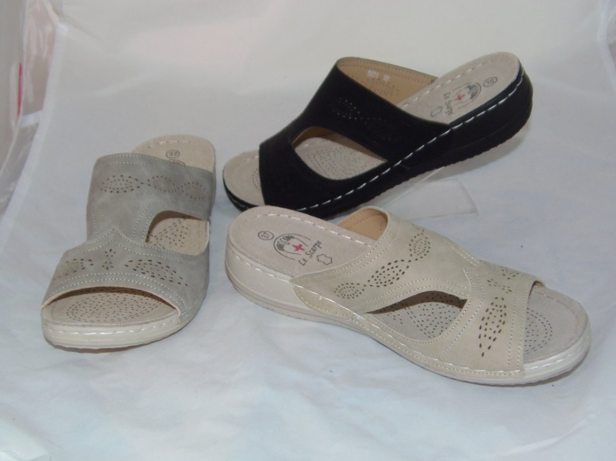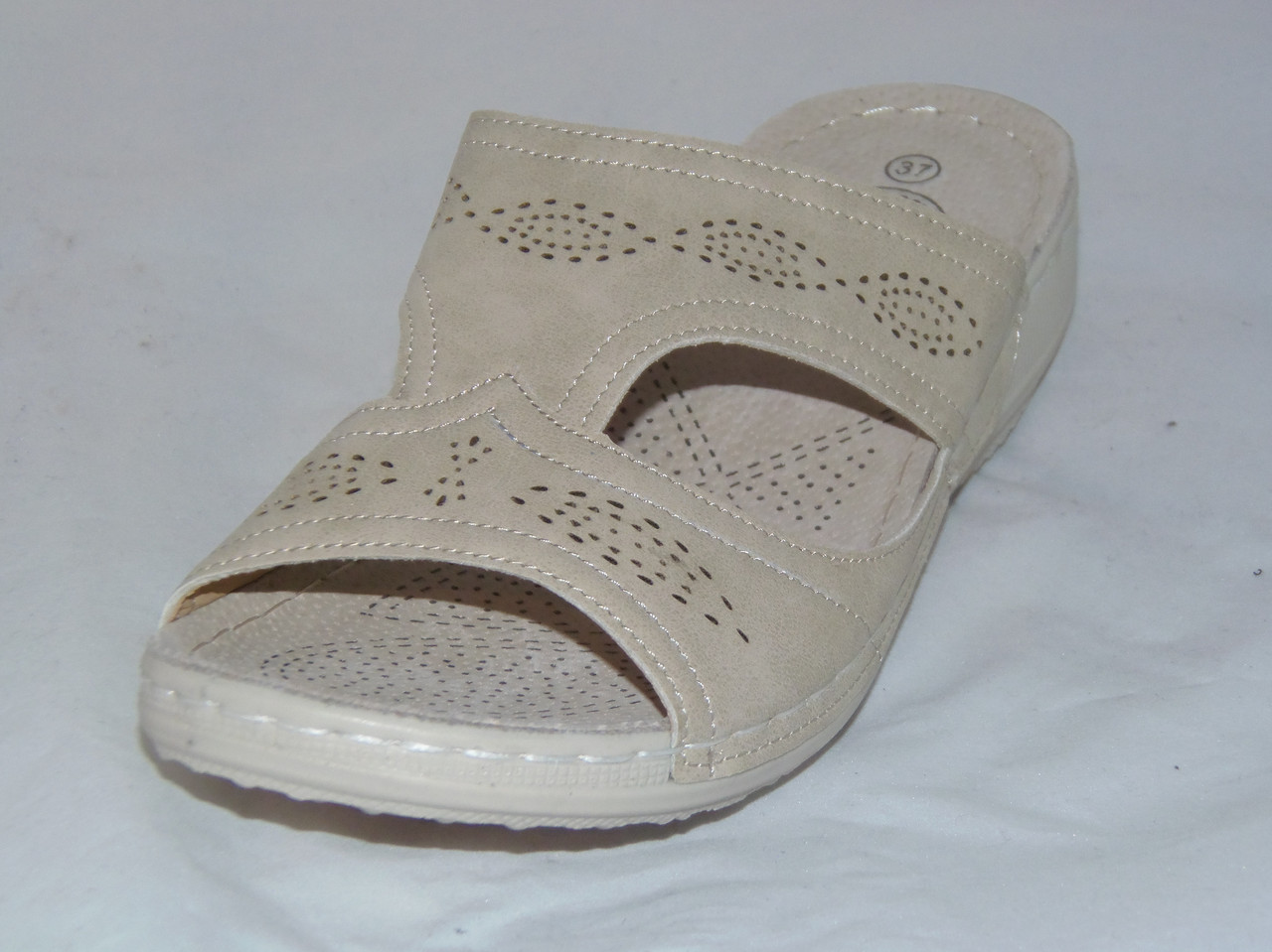 Obuwie damskie letnie comfort w rozmiarach od 36 do 41Klapki damskie z paskami podeszwa klin.Pakowane 12 par karton kolor w kartonikachWystępuje także w kolorze czarnym i szarym.Dostępne także inne fasony i kolory w naszej eHurtowni