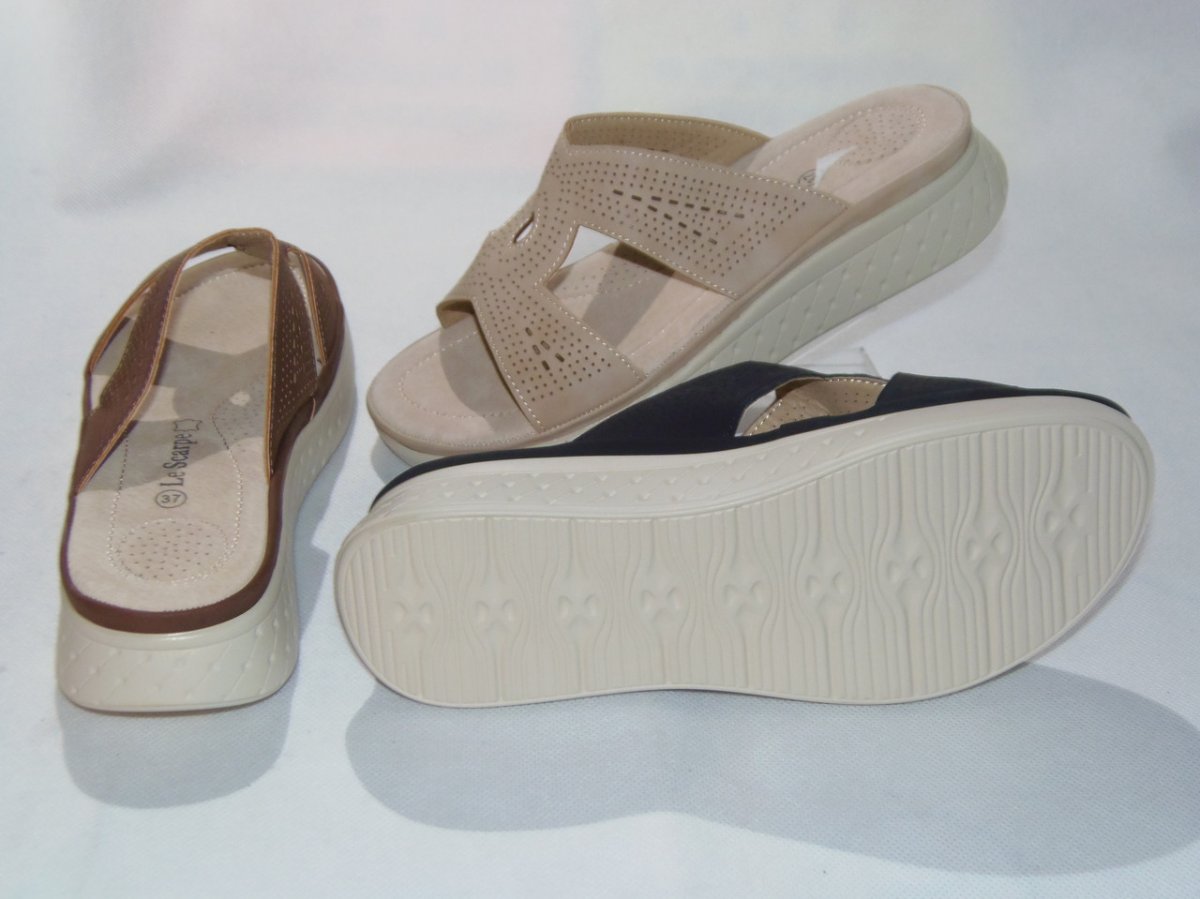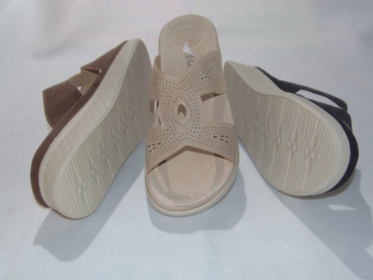 Obuwie damskie letnie comfort w rozmiarach od 36 do 41Klapki damskie z paskami podeszwa klin.Pakowane 12 par karton kolor w kartonikachWystępuje także w kolorze czarnym i brązowym.Dostępne także inne fasony i kolory w naszej eHurtowni