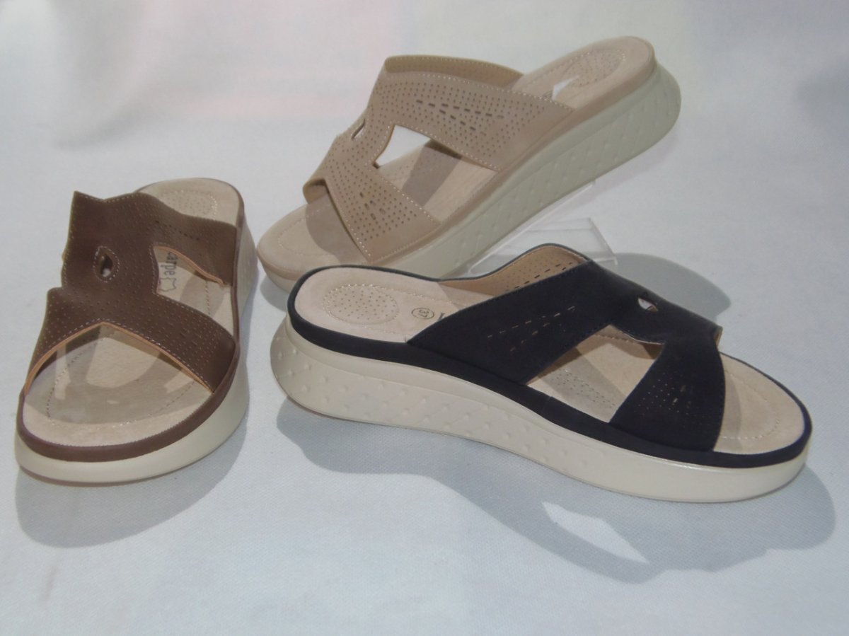 Obuwie damskie letnie comfort w rozmiarach od 36 do 41Klapki damskie z paskami podeszwa klin.Pakowane 12 par karton kolor w kartonikachWystępuje także w kolorze czarnym i beżowym.Dostępne także inne fasony i kolory w naszej eHurtowni