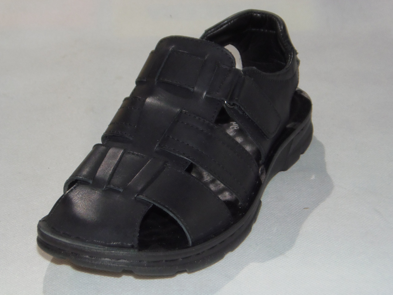 Sandały męskie skórzane comfort podeszwa PU w rozmiarach od 40 do 45Pakowane 12 par karton kolor w kartonikach.Dostępne także w kolorach: ciemno i jasno brązowym.