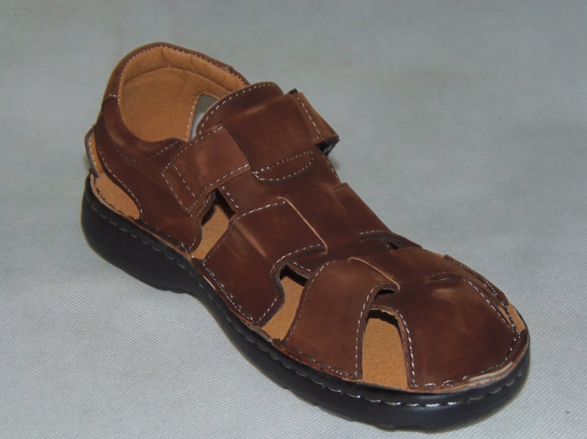 Sandały męskie skórzane comfort, podeszwa PU w rozmiarach od 40 do 45, zakryte palce i pełna pięta.
