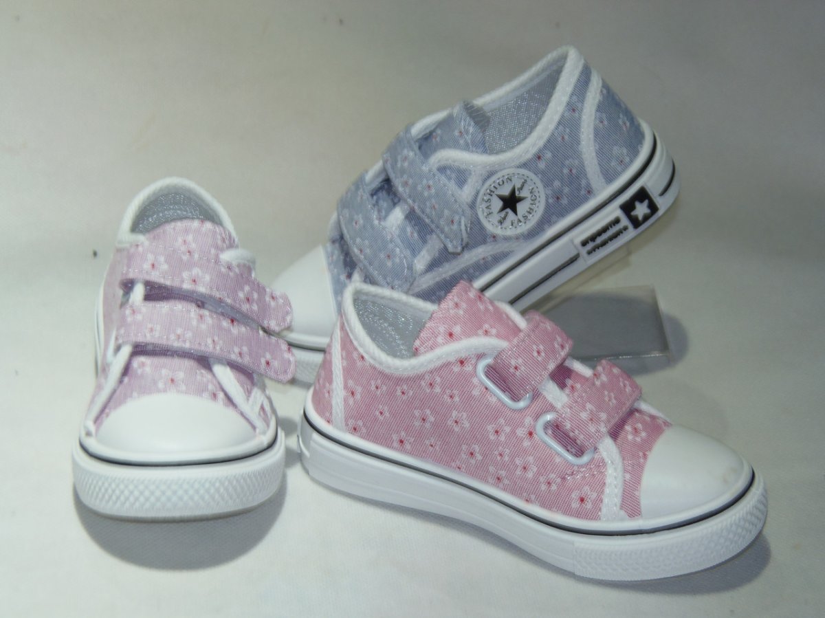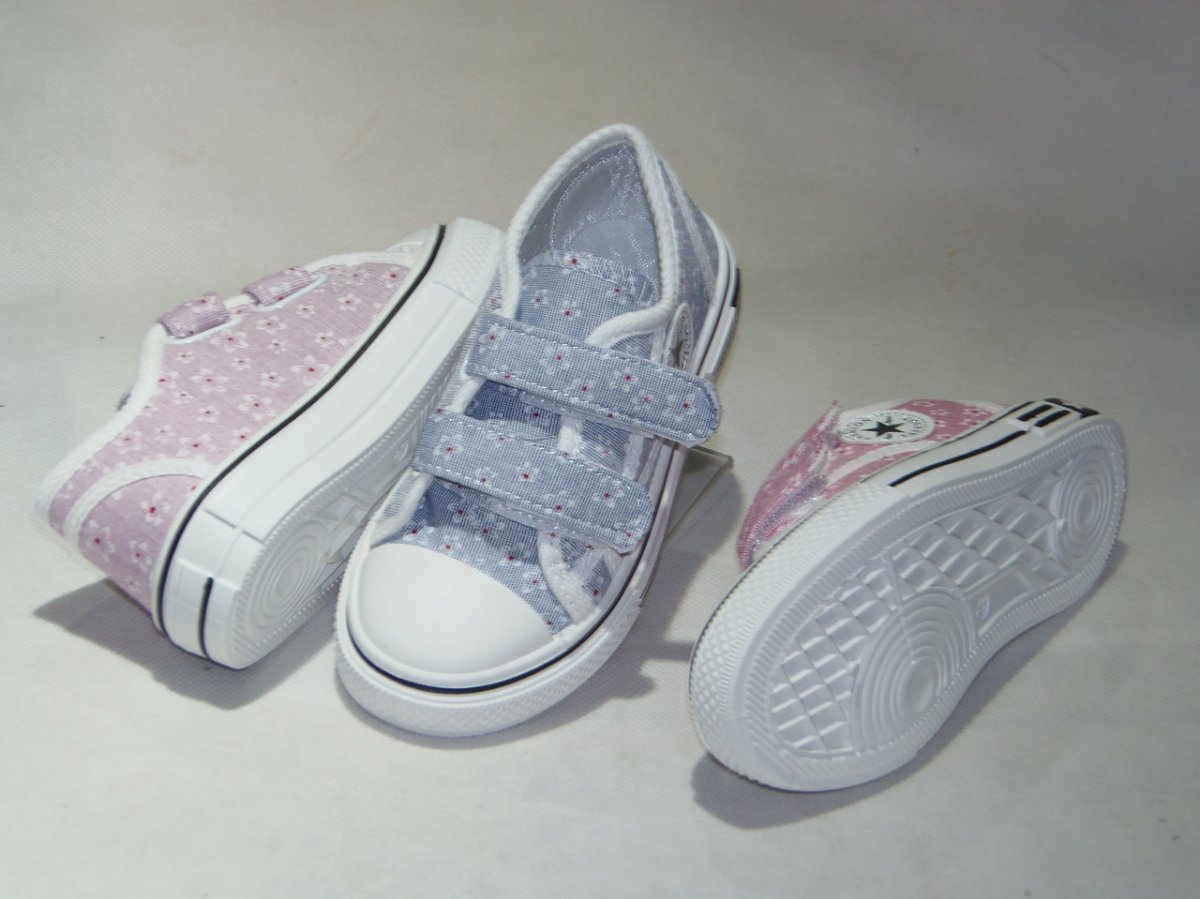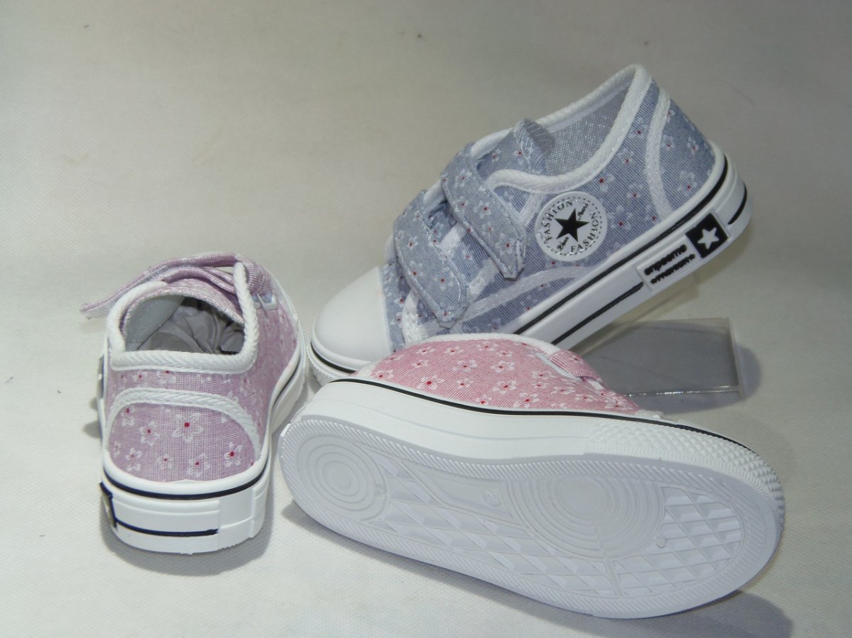 Póltrampki dziewczęce na dwa rzepy, biała podeszwa.
