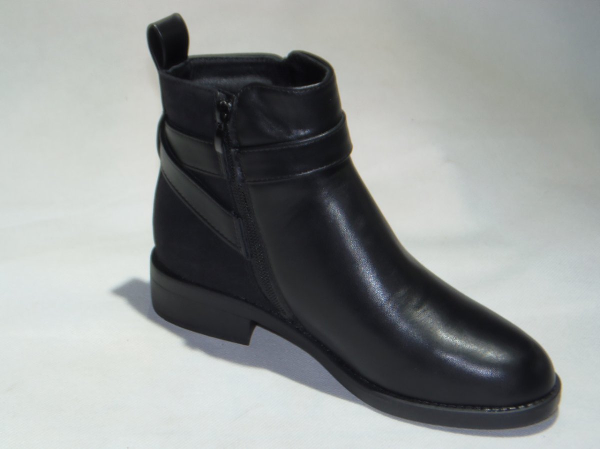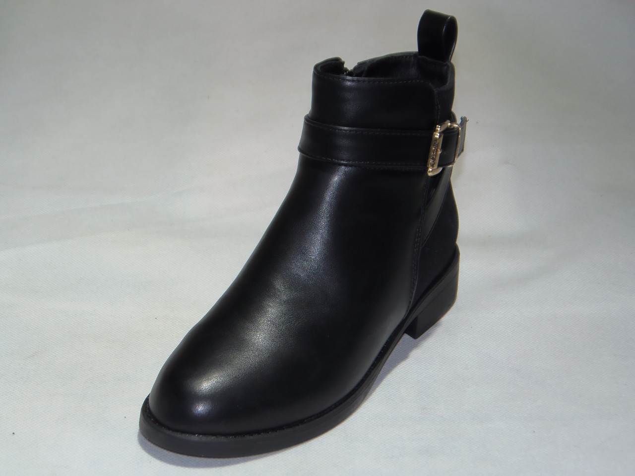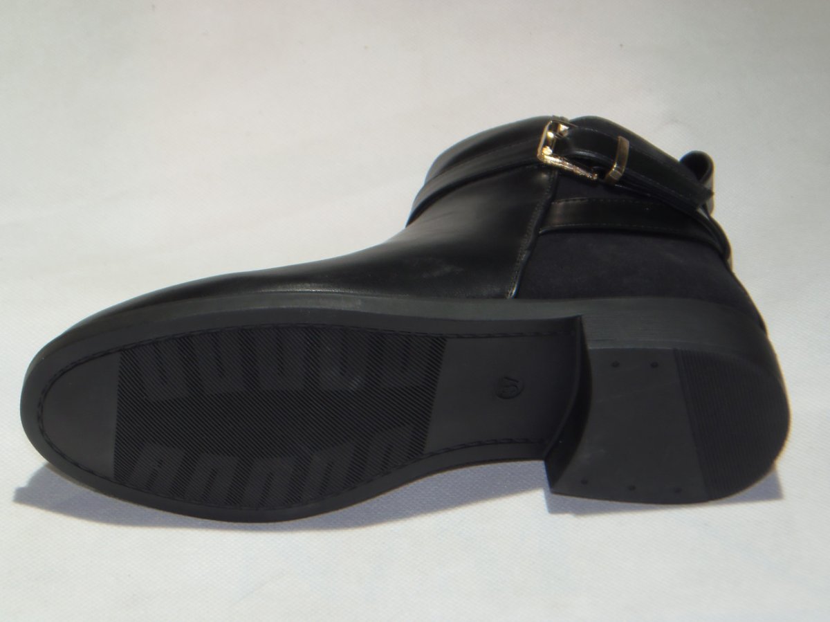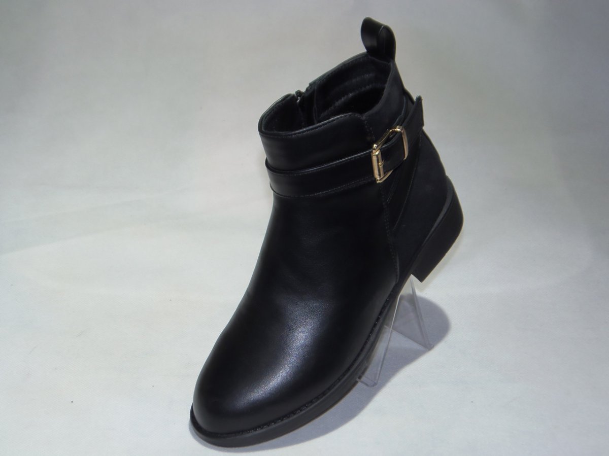 Botki eleganckie obcas 3 cm stabilny, cholewka z zamkiem i klamerką boku.