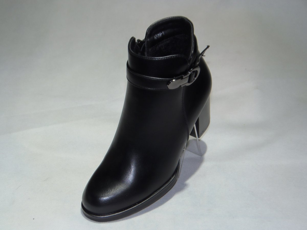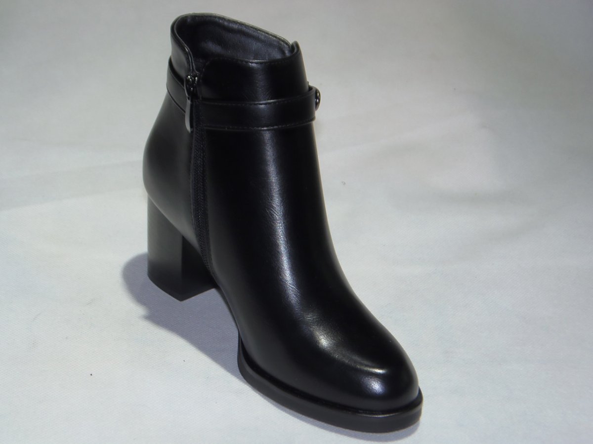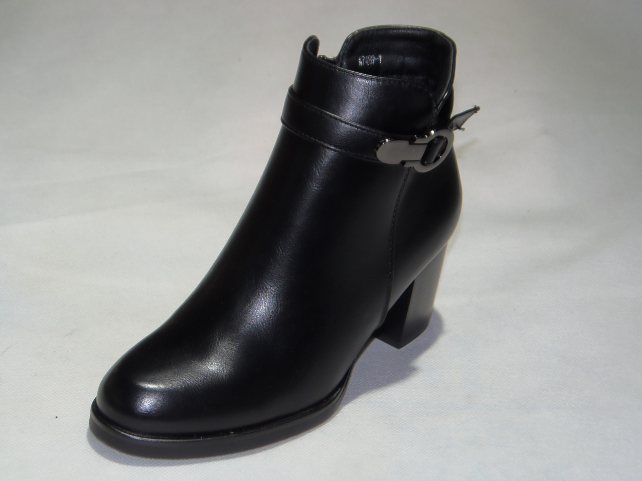 Botki eleganckie obcas 7 cm stabilny, cholewka z zamkiem i ozdobą metalową z boku.