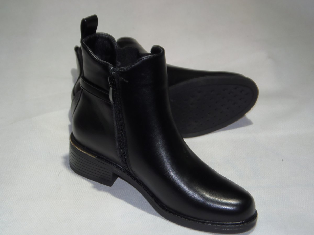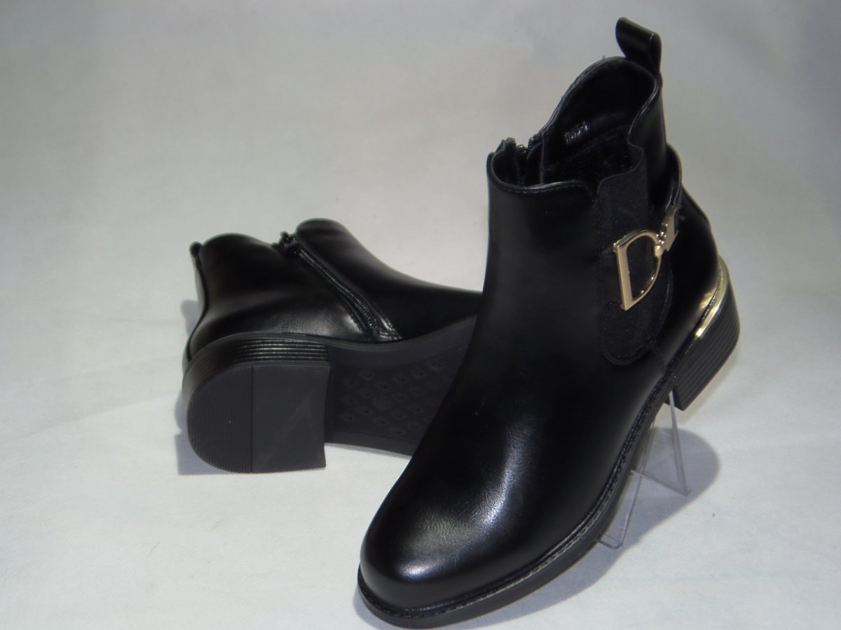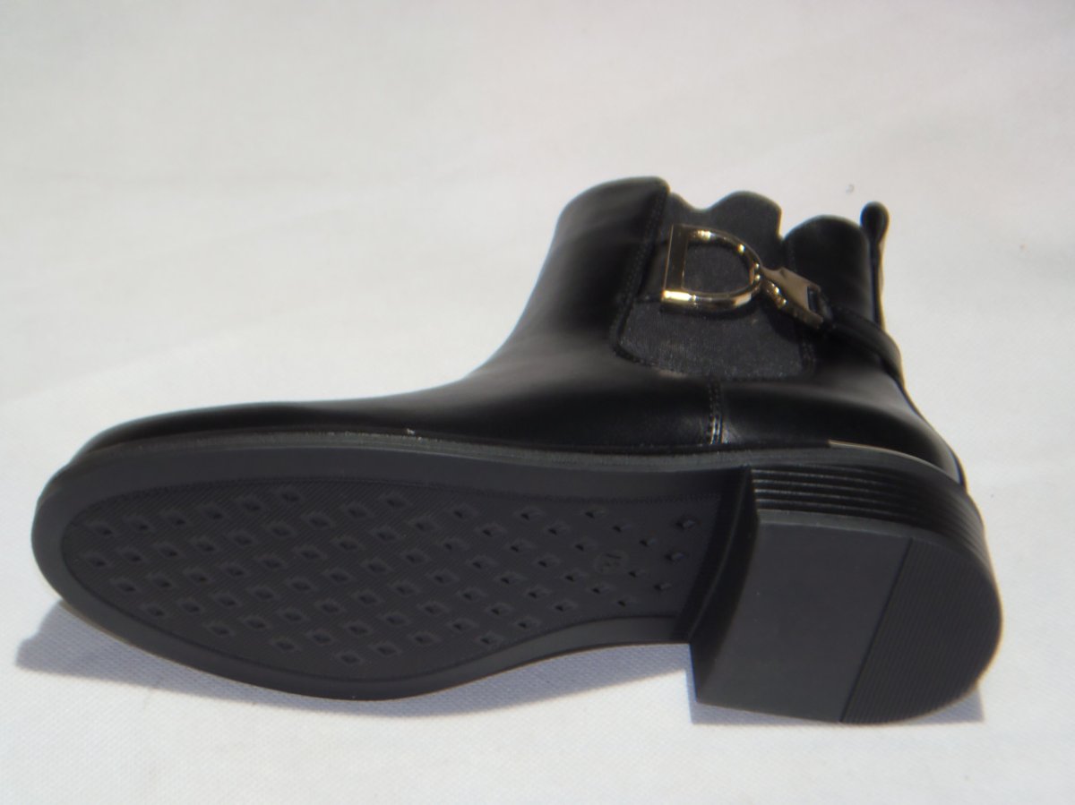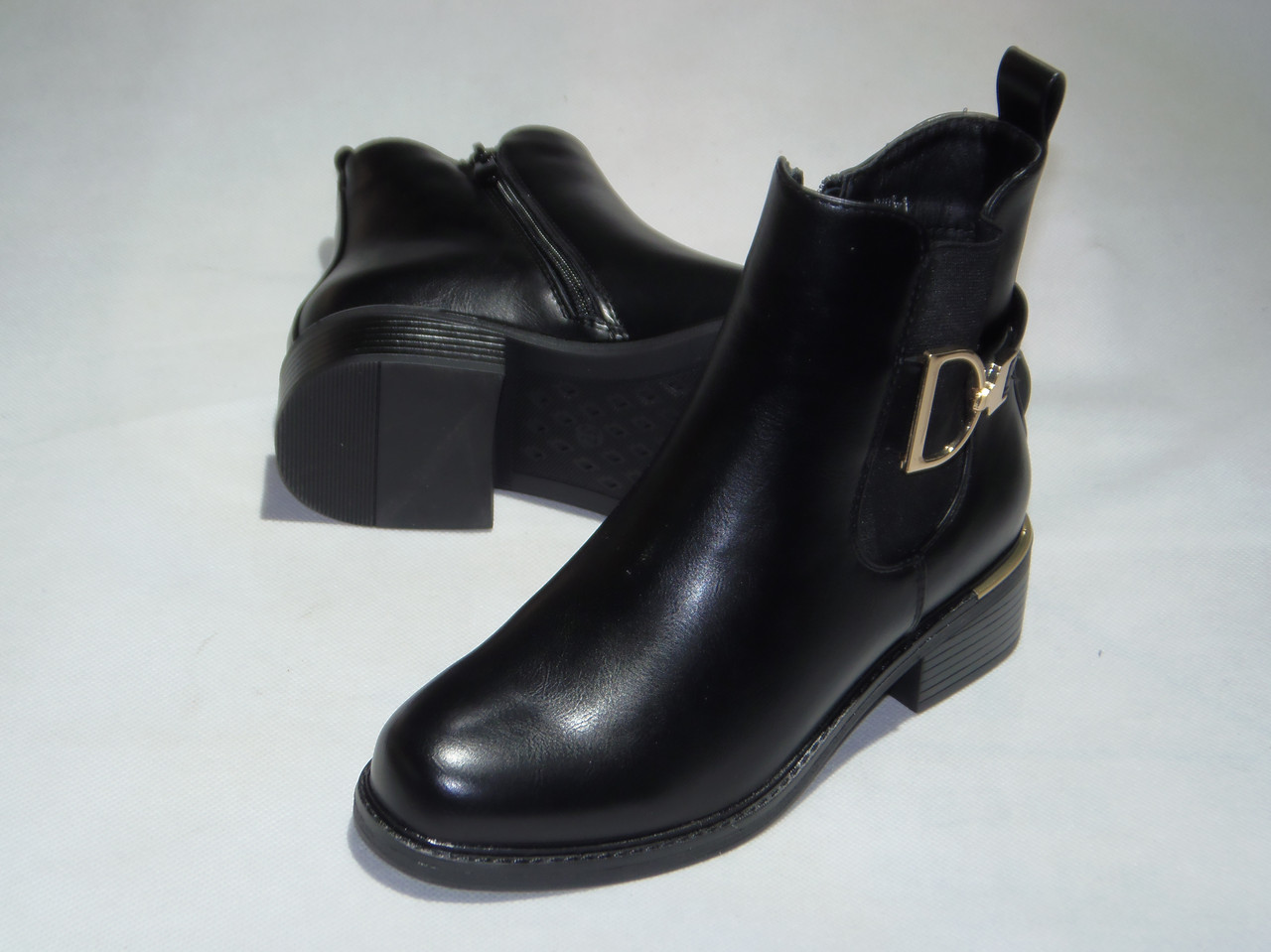 Botki eleganckie obcas 4 cm stabilny z ozdobą, cholewka z zamkiem i gumką oraz klamerką boku.