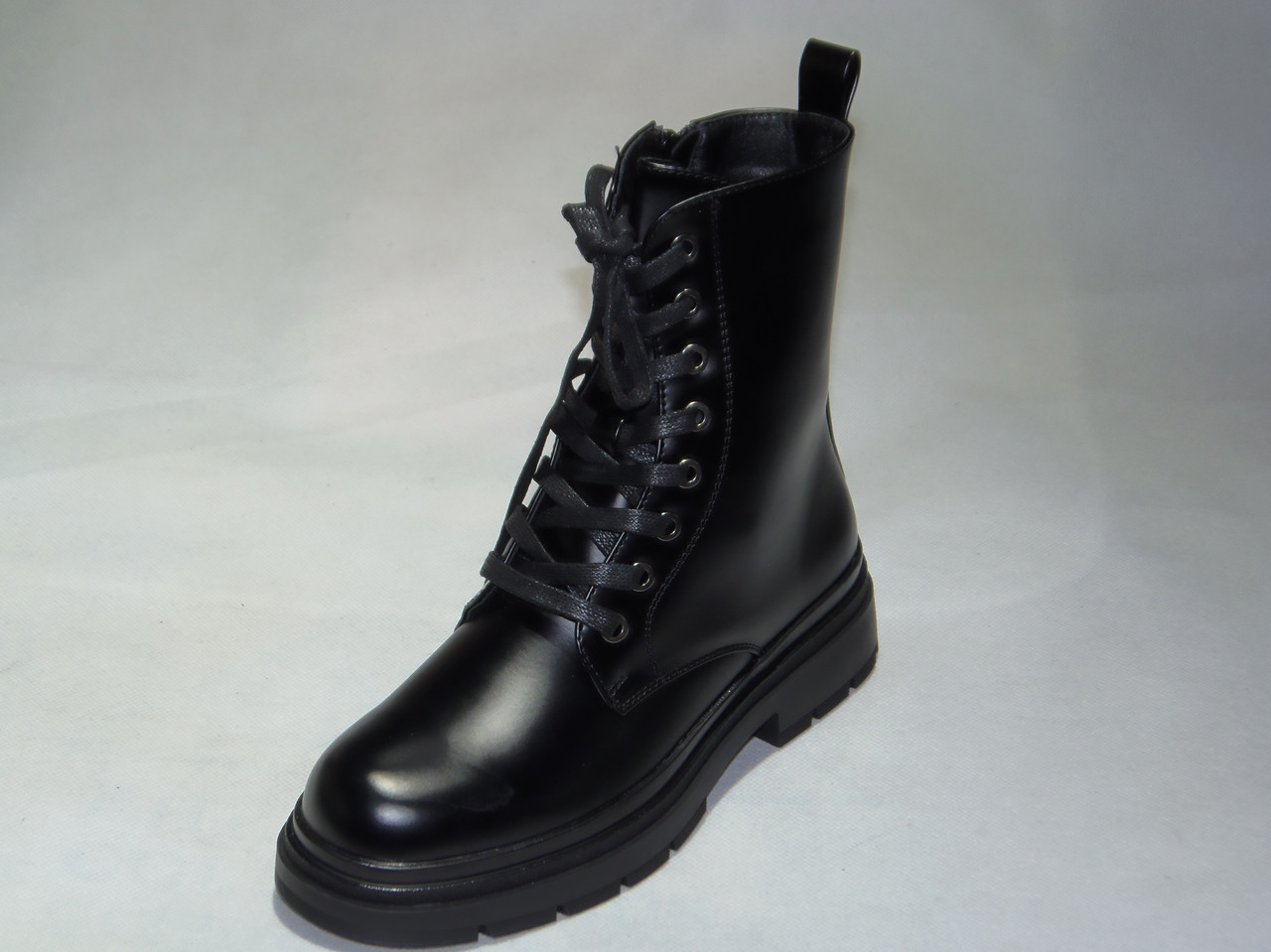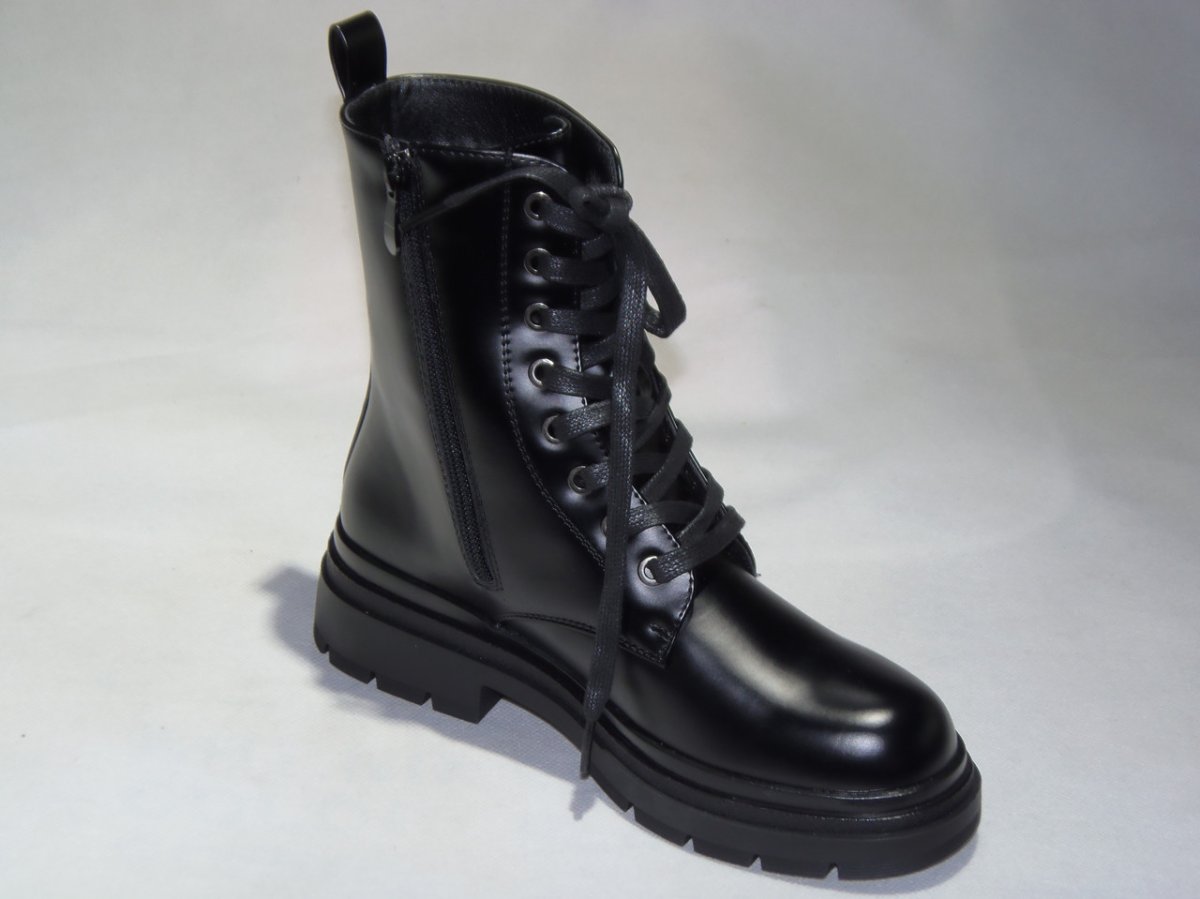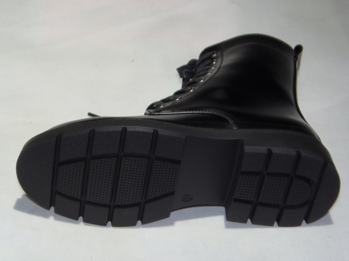 Botki wiązane za kostkę z zamkiem i klamerkami z boku, na traktorze z obcasem ok. 4 cm.