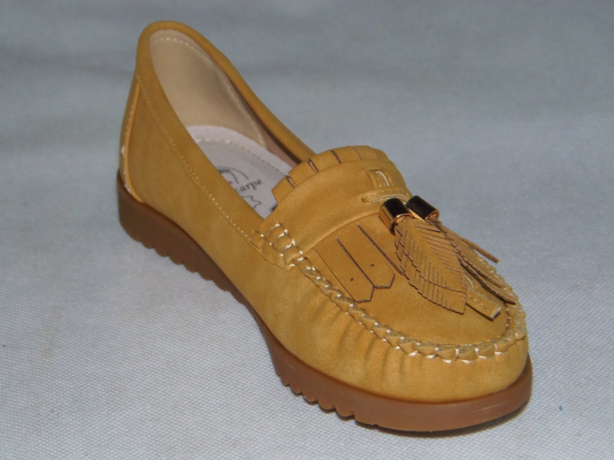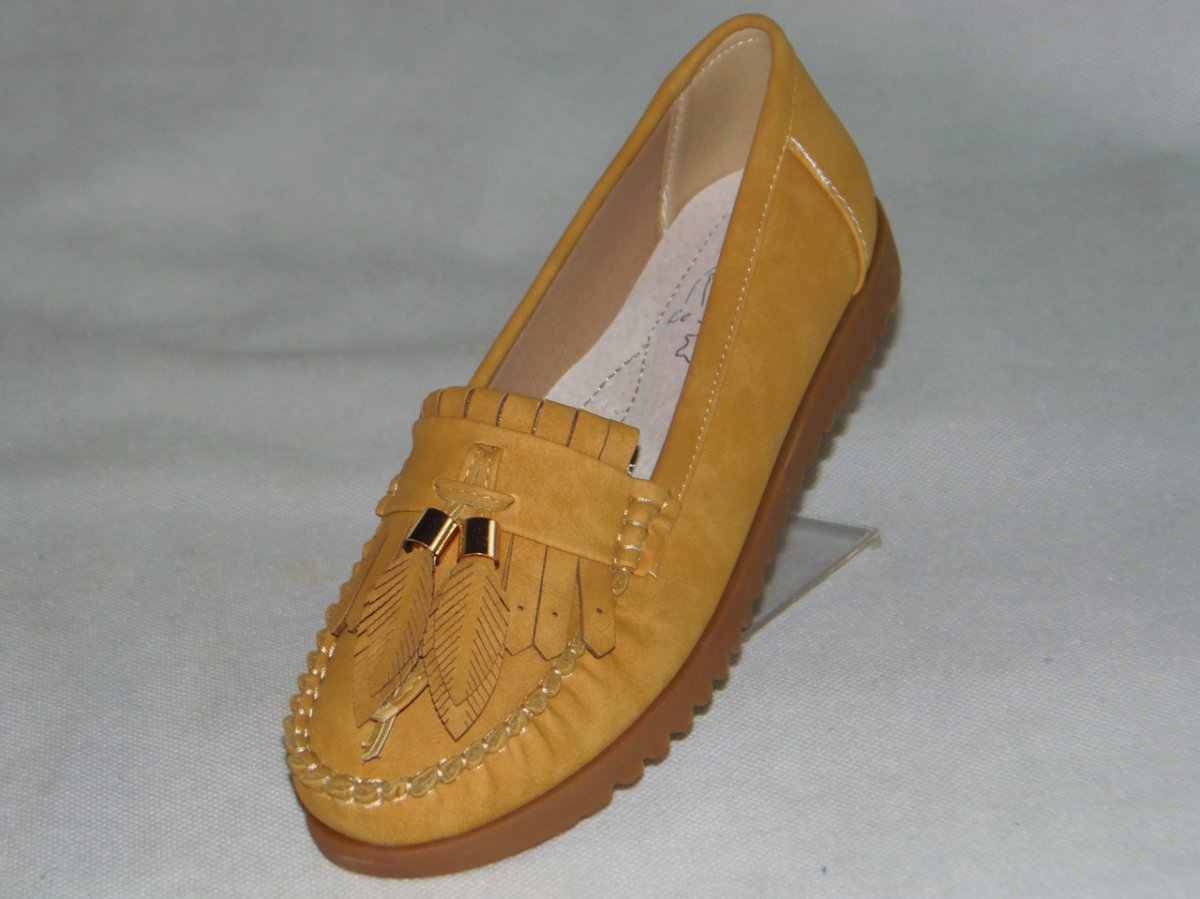 Mokasyny damskie wsuwane podeszwa płaska i gruba na wierzchu pikowane z frędzelkami.