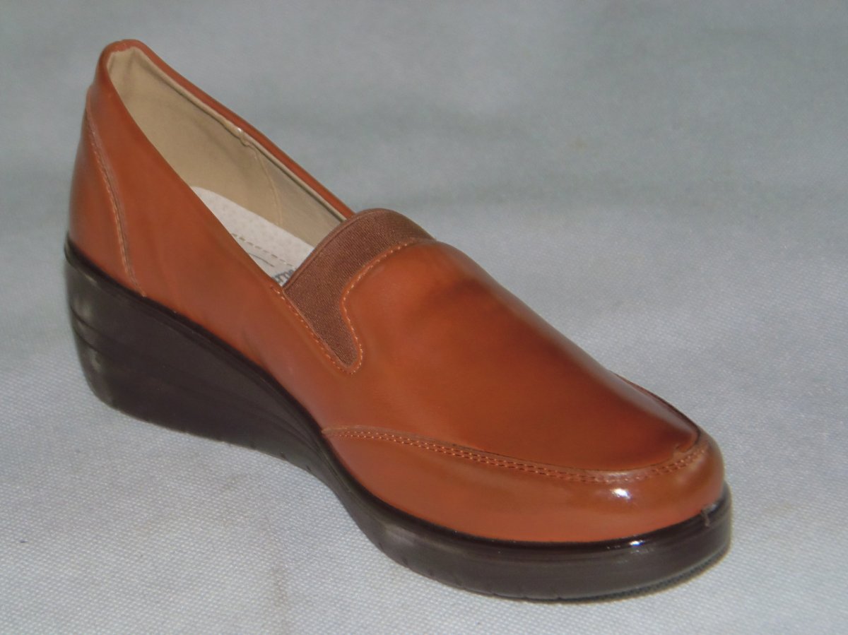 Półbuty damskie wsuwane z szeroką gumką, podeszwa klin.