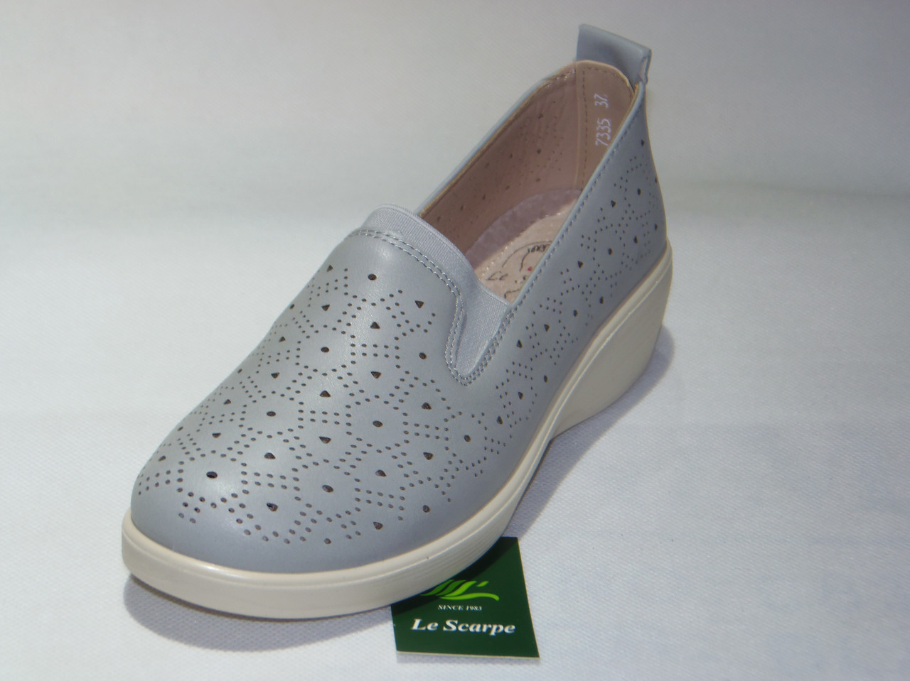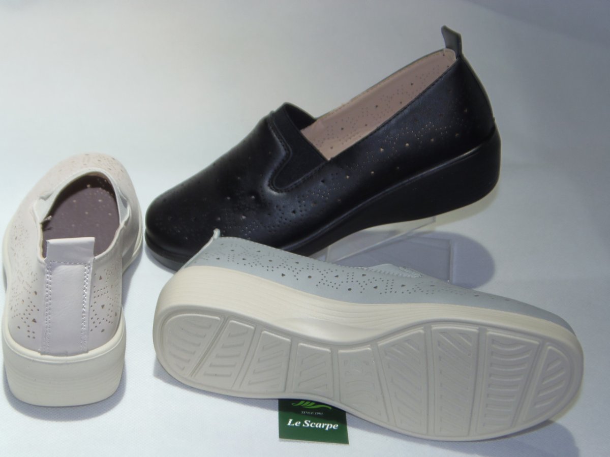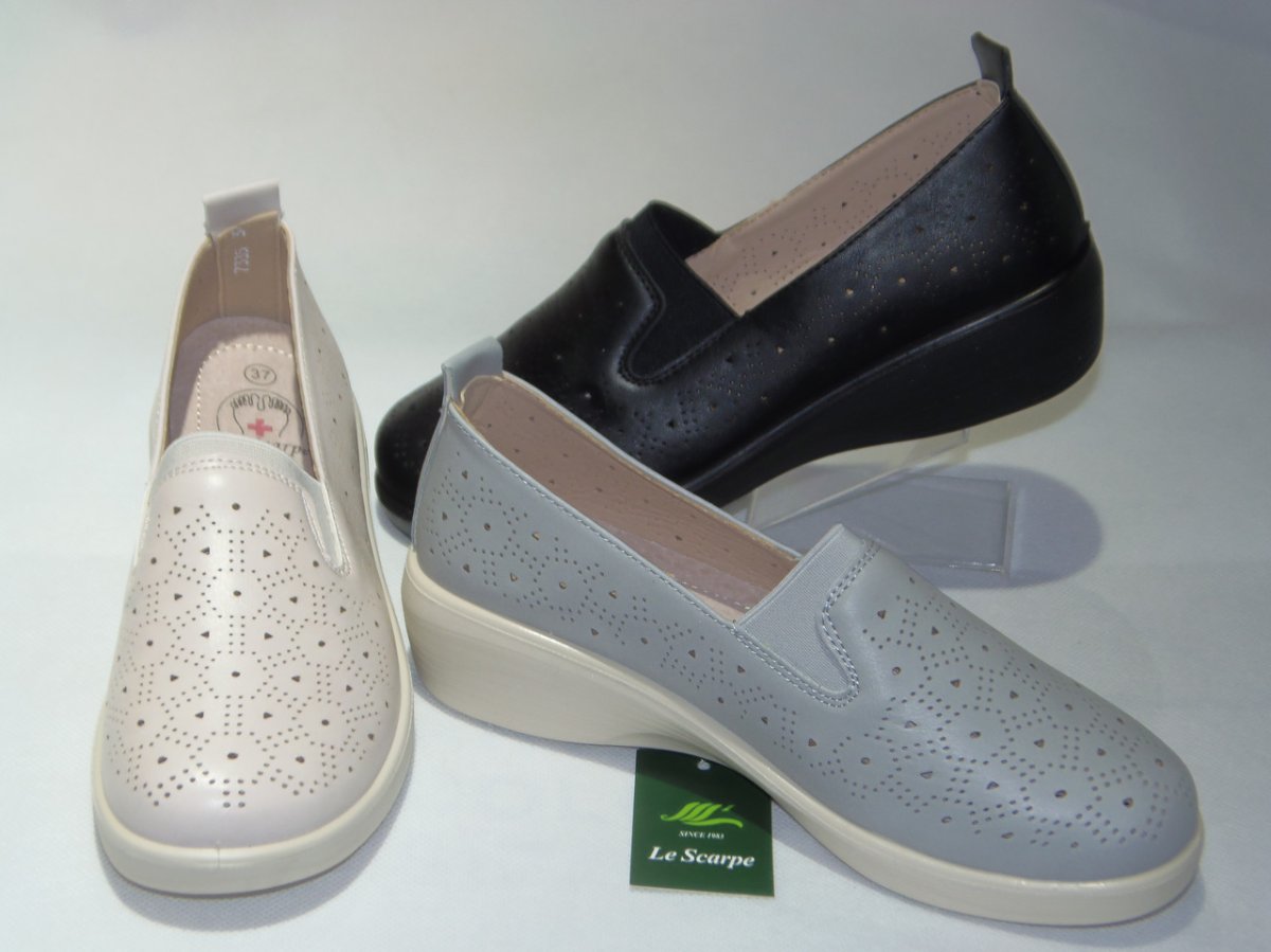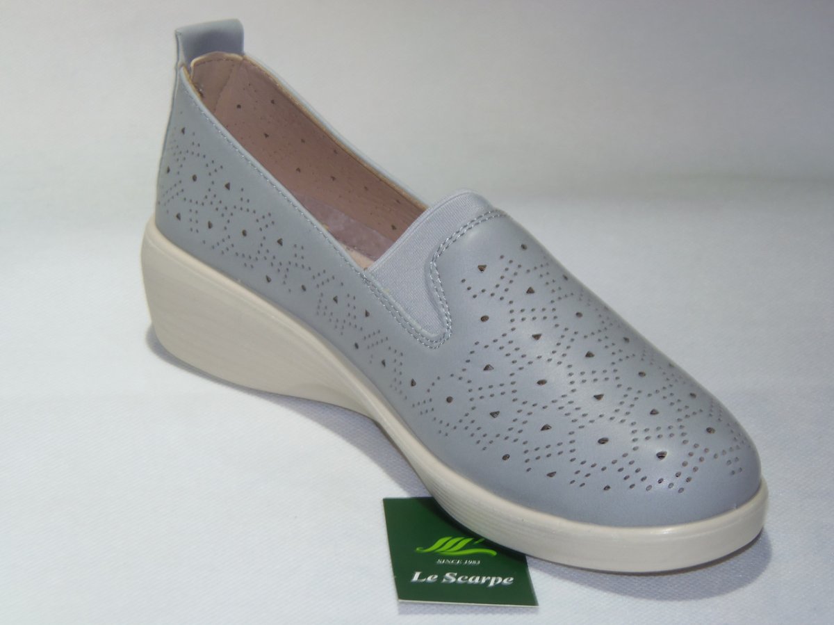 Półbuty damskie wsuwane z gumką, podeszwa klin, z dziurkami na wierzchu PU.