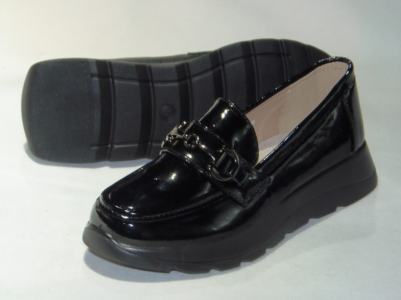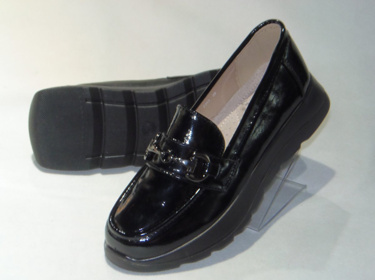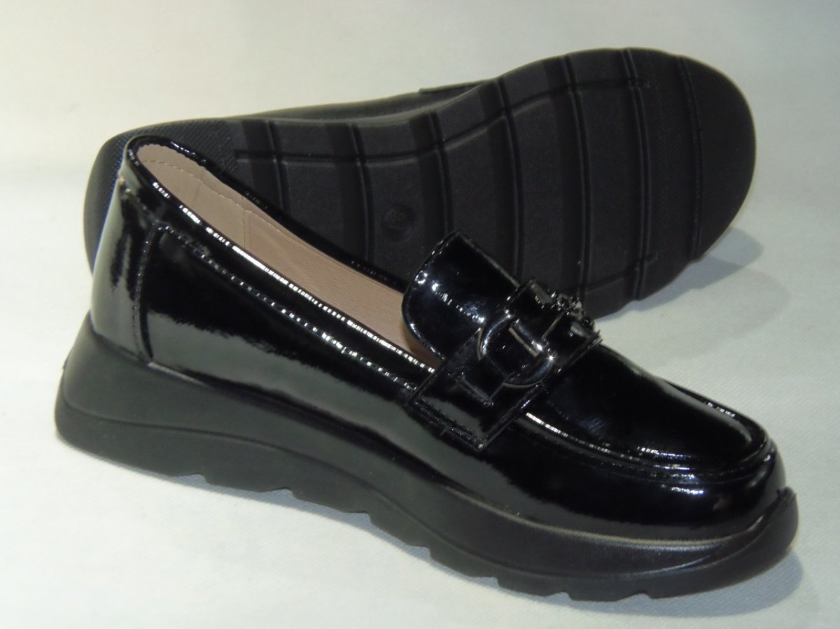 Półbuty damskie wsuwane lakierowane ze sprzączką podeszwa platforma.