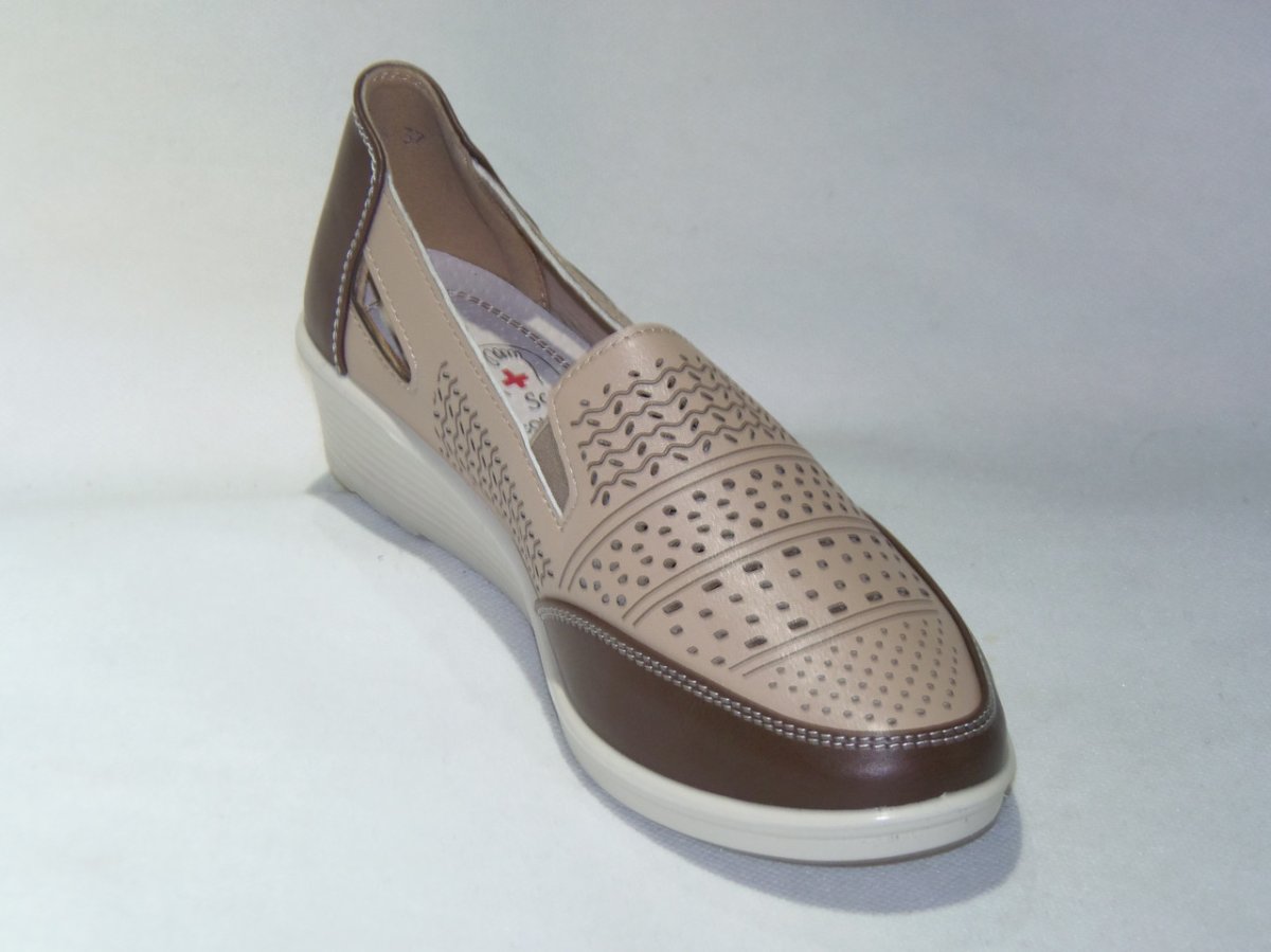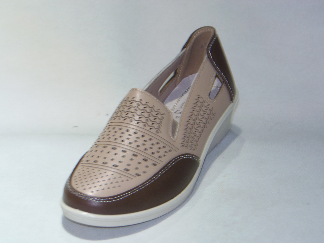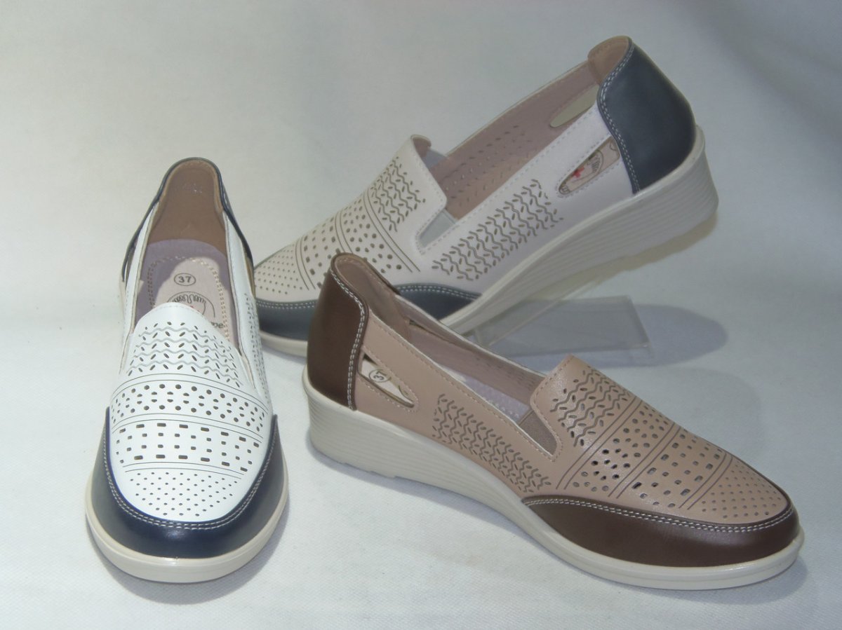Półbuty damskie dziurkowane, wsuwane z gumkami, podeszwa klin, wierzch PU.