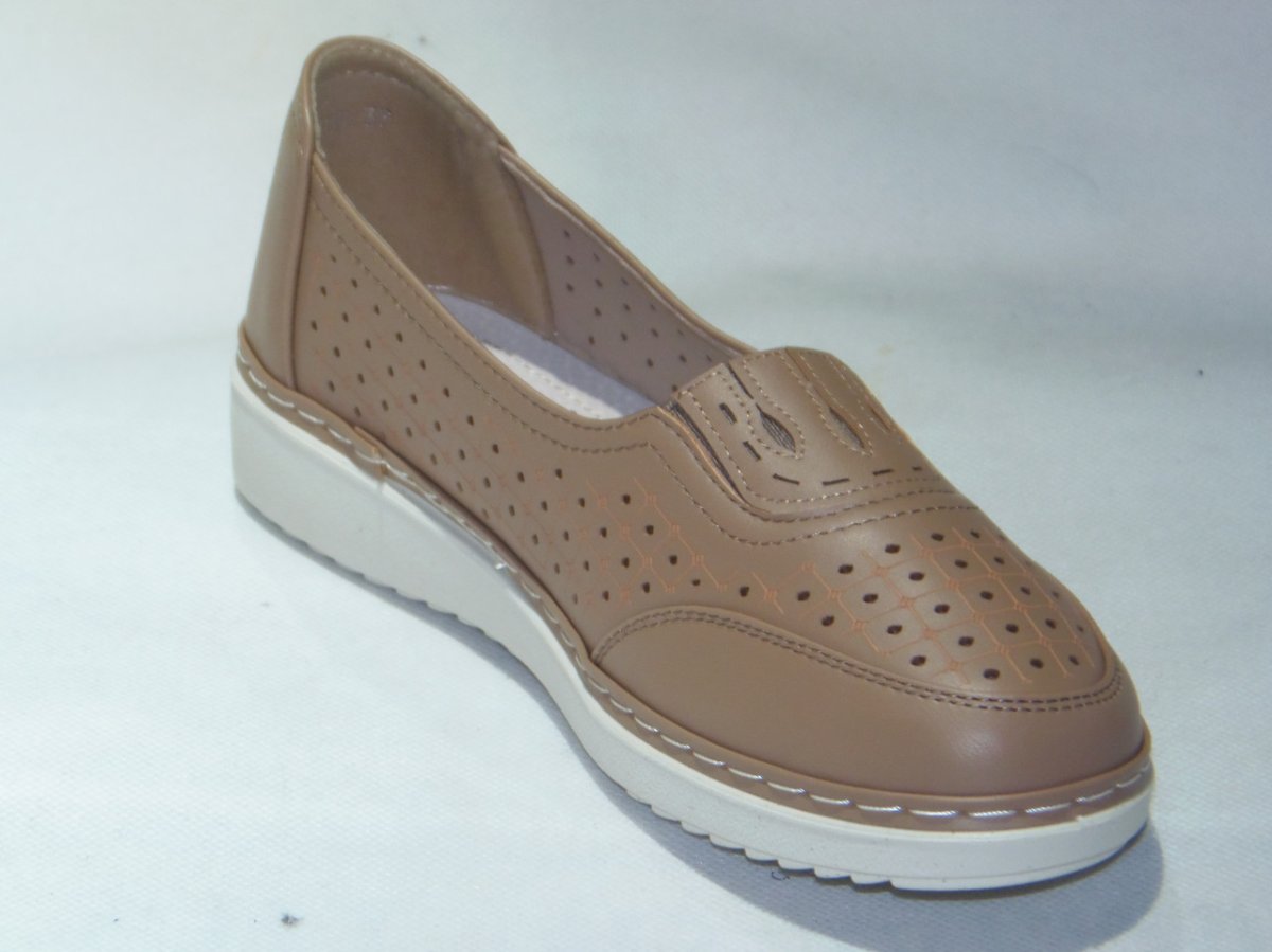 Półbuty damskie dziurkowane, wsuwane z gumką, podeszwa klin, wierzch PU.