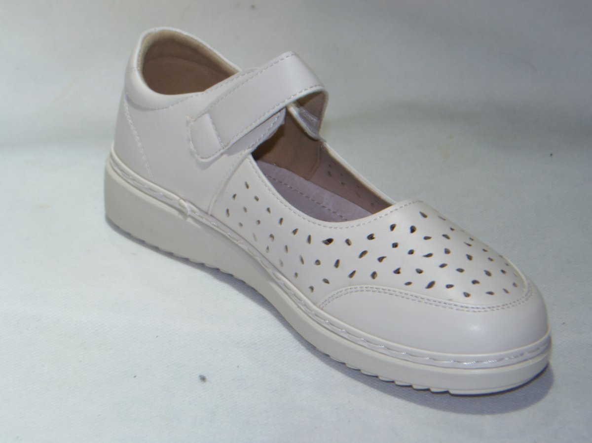 Półbuty damskie wsuwane z paskiem, podeszwa klin, dziurkowane wierzch PU.