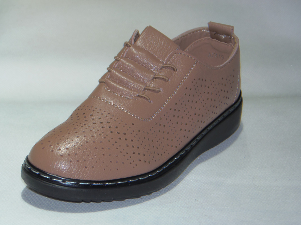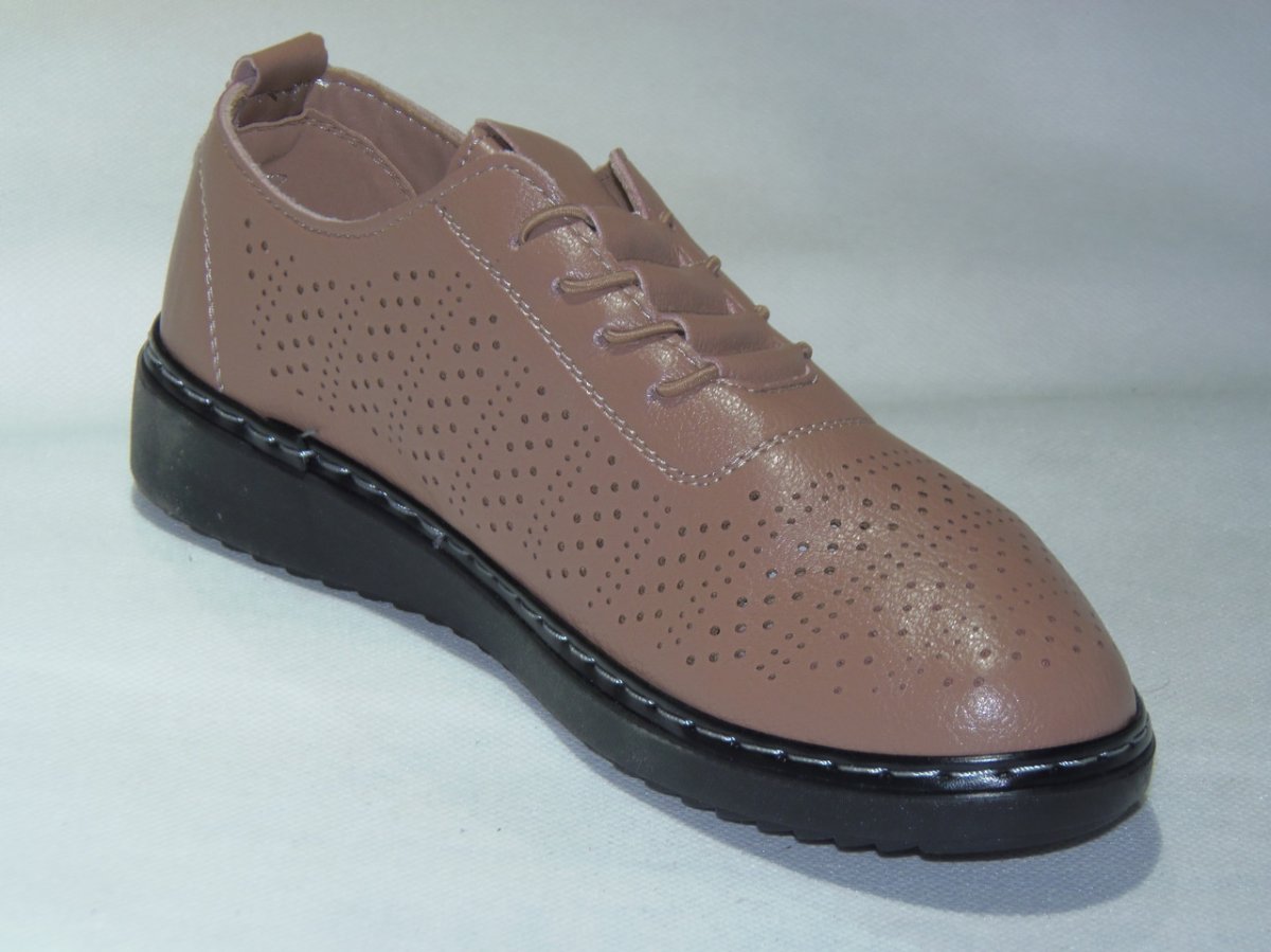 Półbuty damskie wsuwane z gumką i imitacją sznurówki, podeszwa klin, z dziurkami na wierzchu PU.