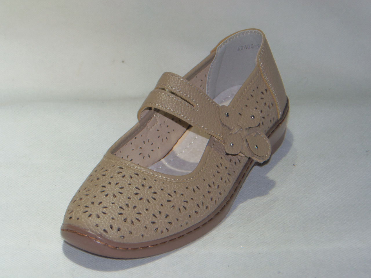 Półbuty damskie wsuwane z paskiem, podeszwa klin, dziurkowane wierzch PU.