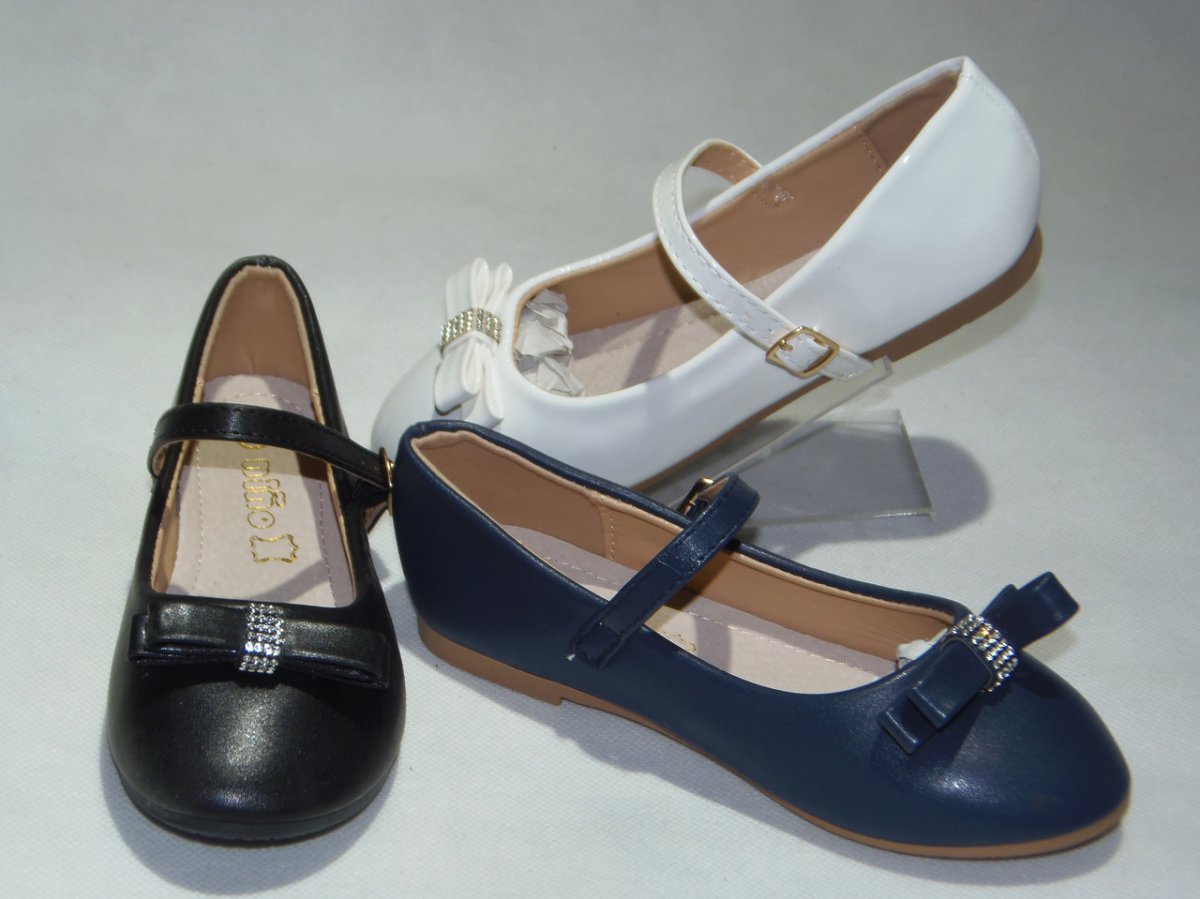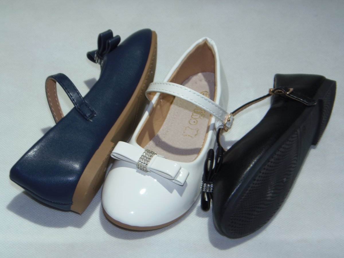 Balerinka z paskiem na rzep, ozdobną patką i ozdobą z cyrkoni z przodu, podeszwa comfort .